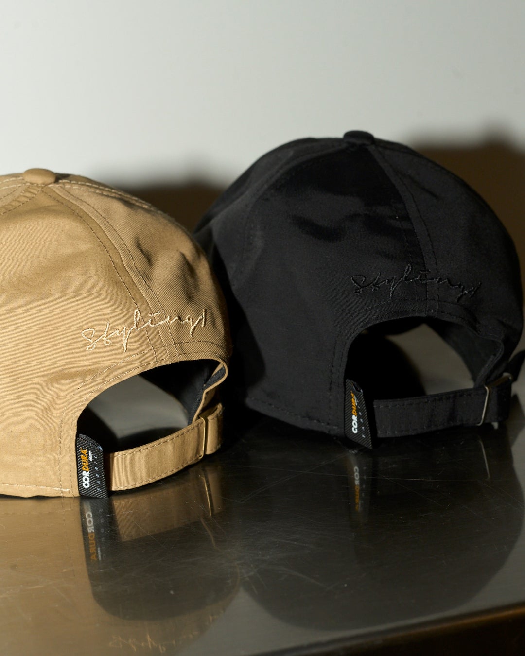 線の細い筆記体で表現されたstyling/のブランドネームが、CAPの持つラフなムードにセンシュアルな印象を残します。通常のナイロンと比べて非常に優れた強度と耐久性を持つ生地素材「CORDURA®」 と、内側のスウェットバンドに抗菌素材を用いたハイスペックな仕様で、夏のさまざまなシーンに気兼ねなくかぶれる逸品です。