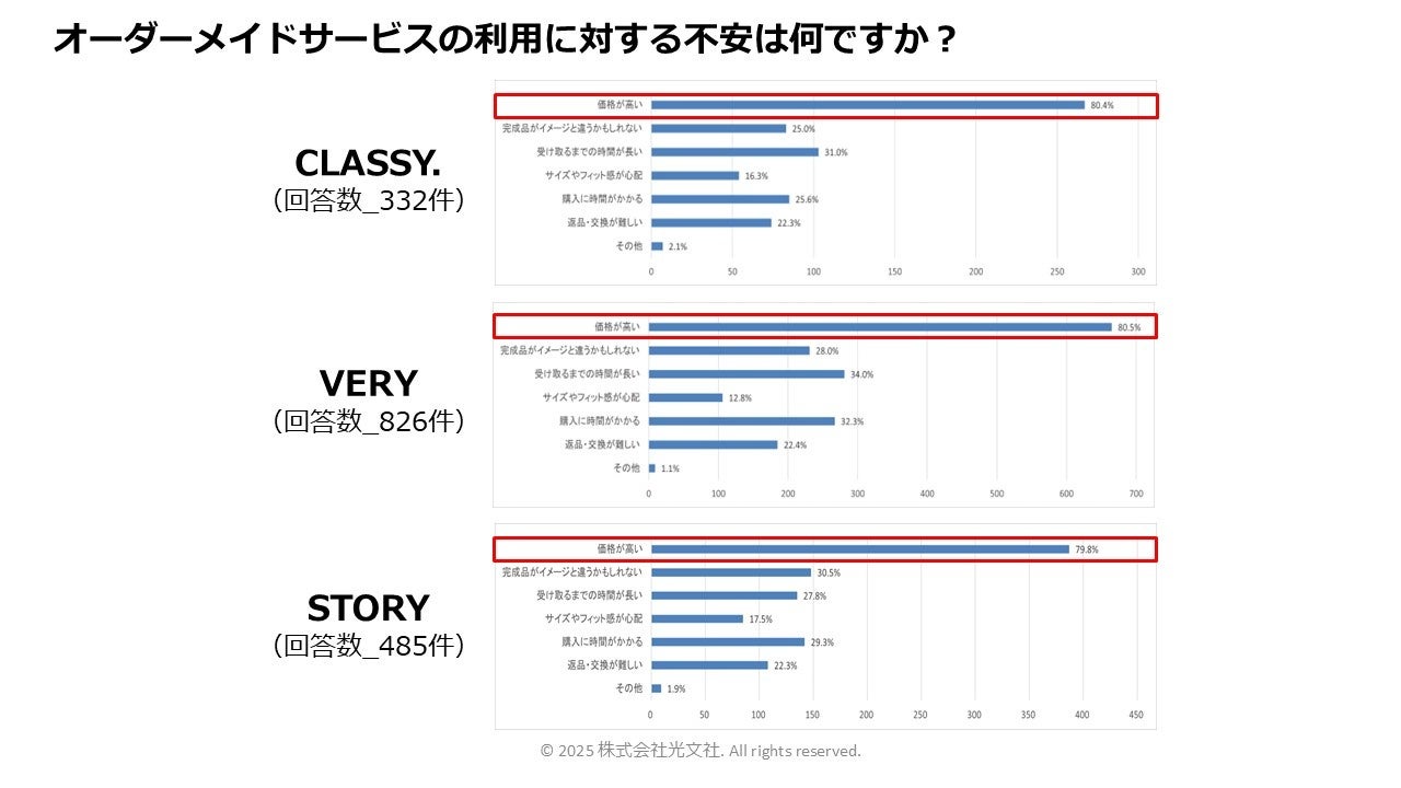 ・3誌すべてで、「オーダーメイドは価格が高そう」との回答が約80%。