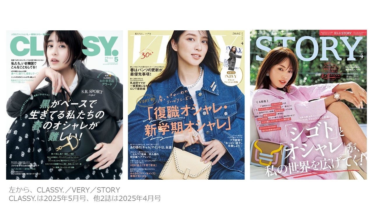 →『CLASSY.』64.9%、『VERY』51.9%、『STORY』44.6%