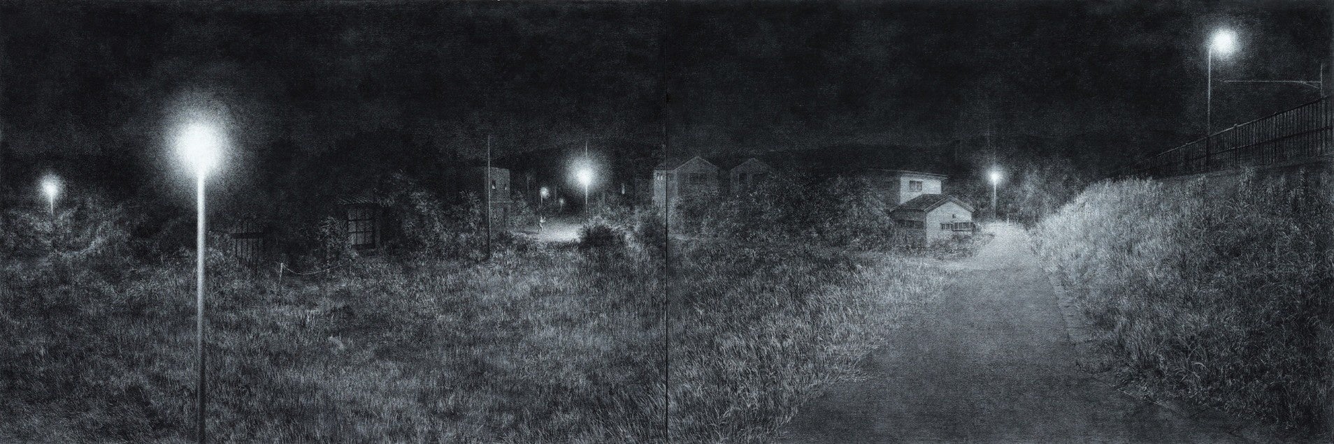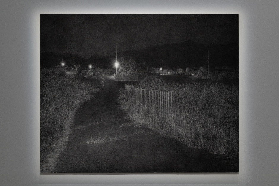 奨励賞の大東忍さんは1993年、愛知県生まれ。過疎地や住宅街などの夜の風景を木炭で描き、深奥なモノクロームの表現は「VOCA展2024」などを通じて高く評価されています。