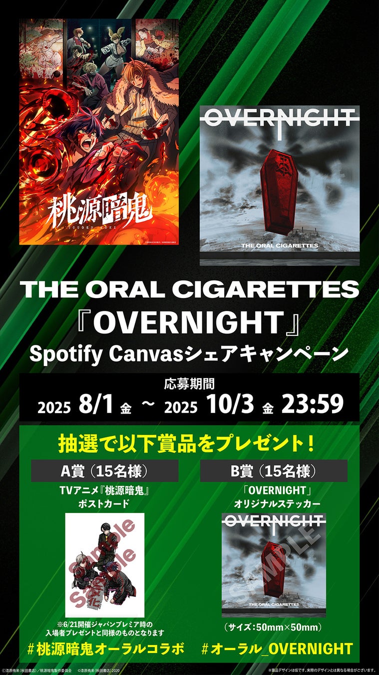 ■■THE ORAL CIGARETTES「OVERNIGHT」 X TVアニメ『桃源暗鬼』Spotify Canvasシェアキャンペーン