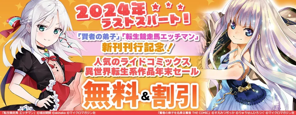 honto様:2024年ラストスパート!「賢者の弟子」「転生競走馬 エッチマン」新刊刊行記念!人気のライドコミックス異世界転生計作品年末セール