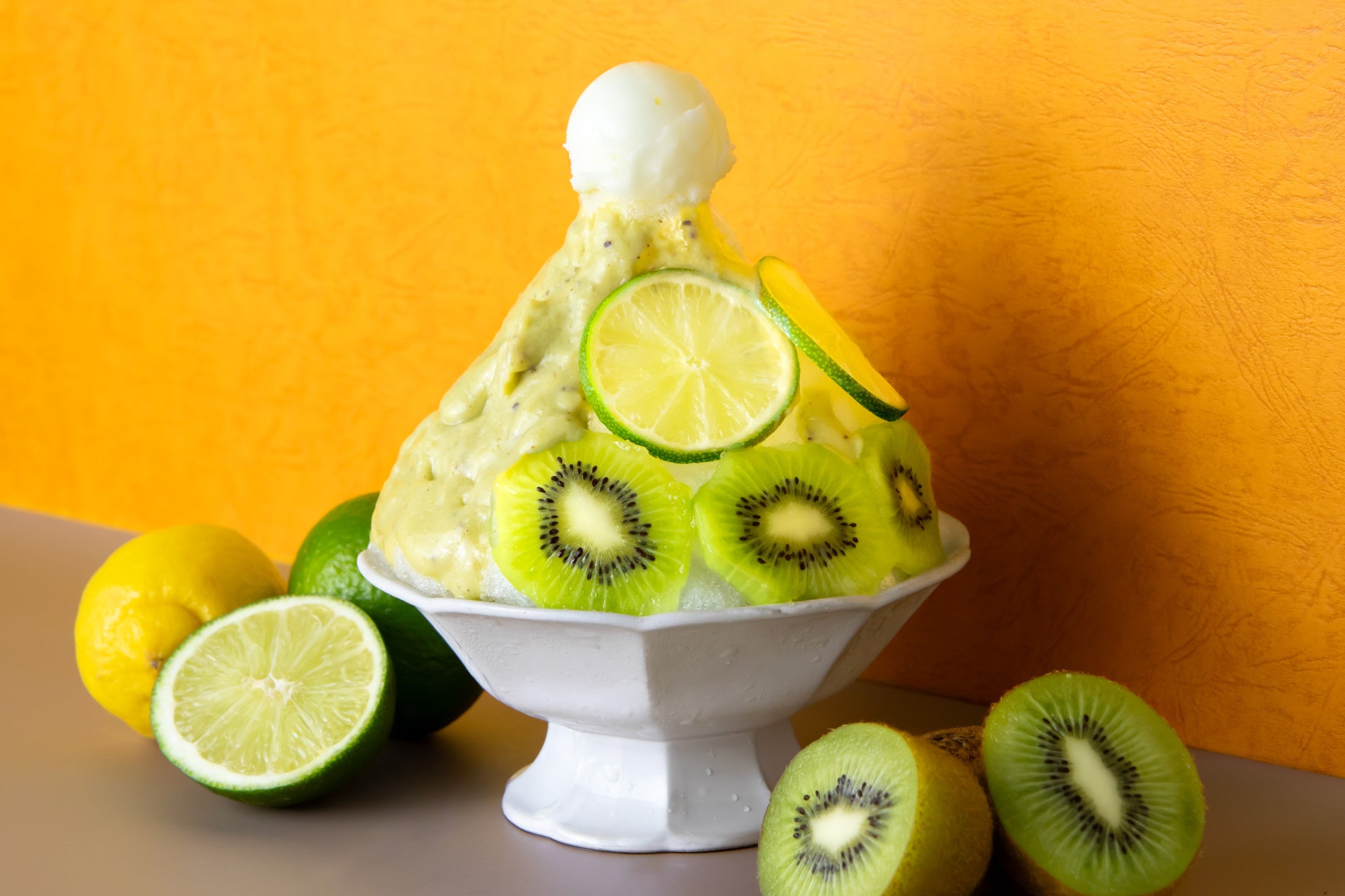 甘酸っぱくて後味すっきりな、キウイとライムのかき氷。暑~い日にピッタリです!