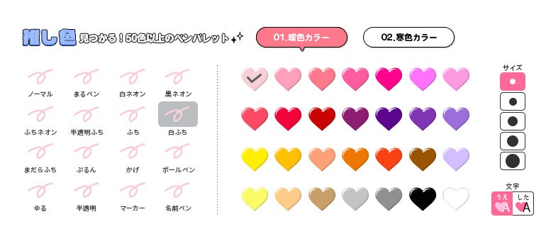 ・推し色で文字が書ける!50色以上から選べる豊富なペンカラー