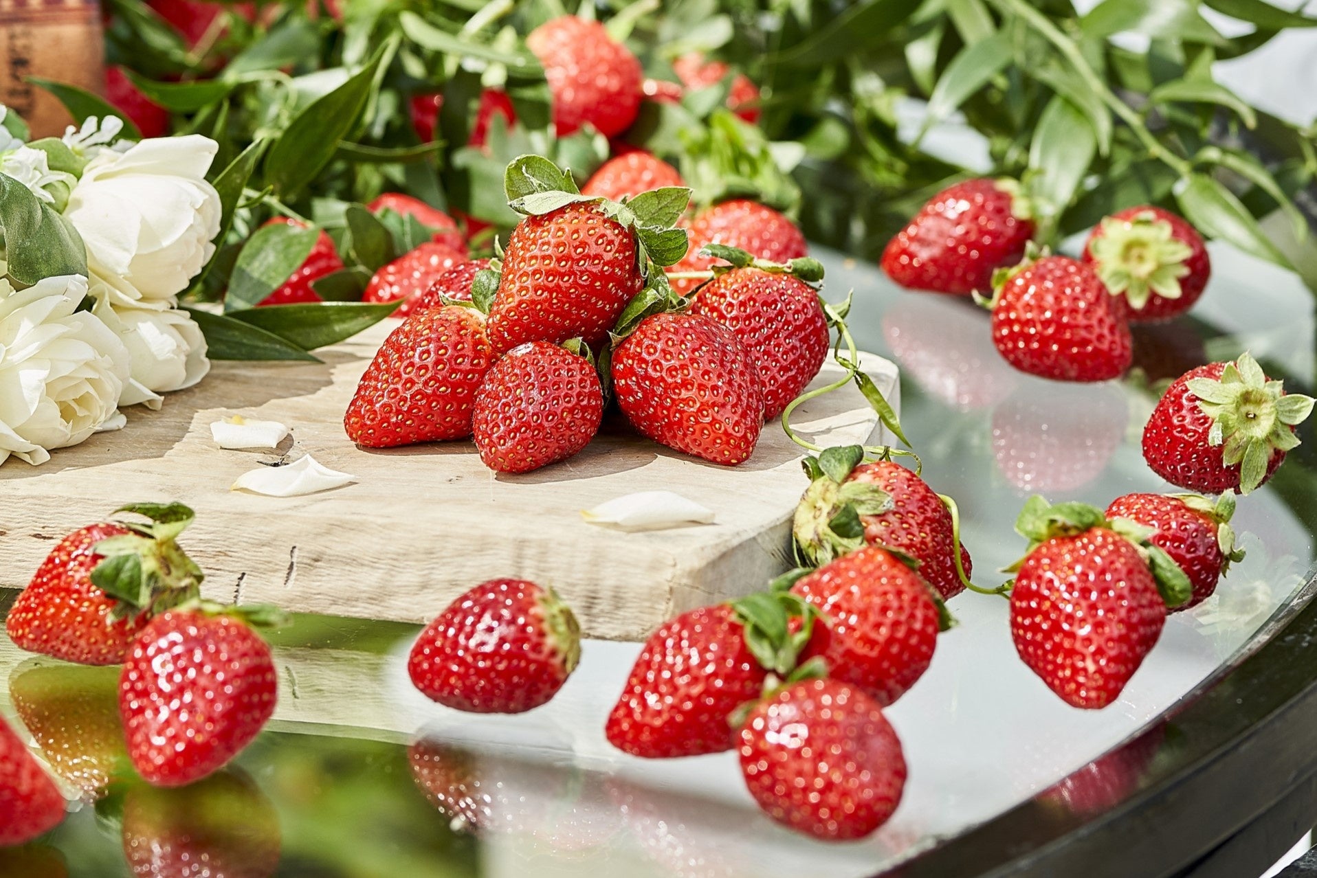 作品のイメージカラーであるグリーンの食材として、ピスタチオやミントを使用。苺と組み合わせることでそのおいしさをさらにバリエーション豊かに表現しています。
