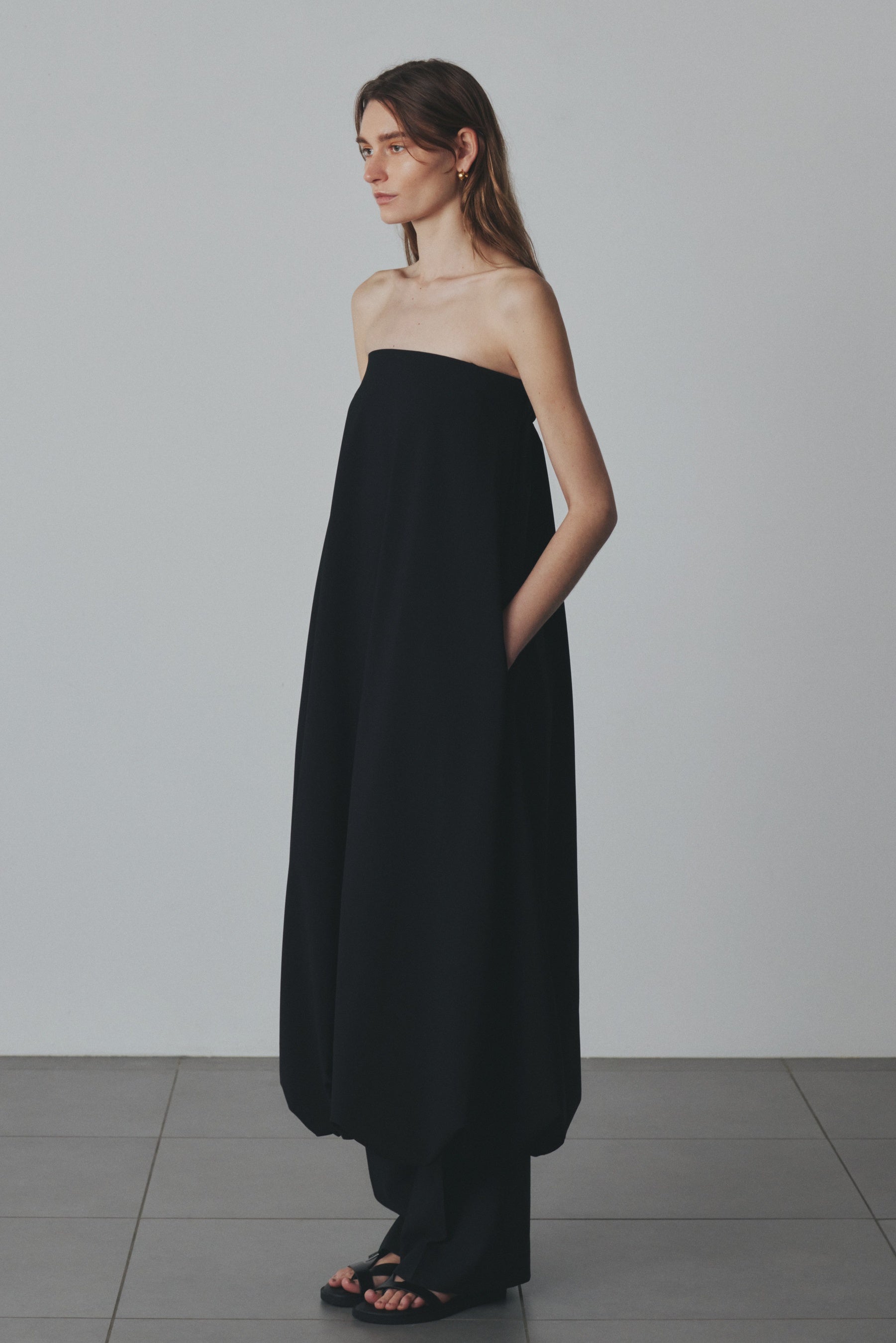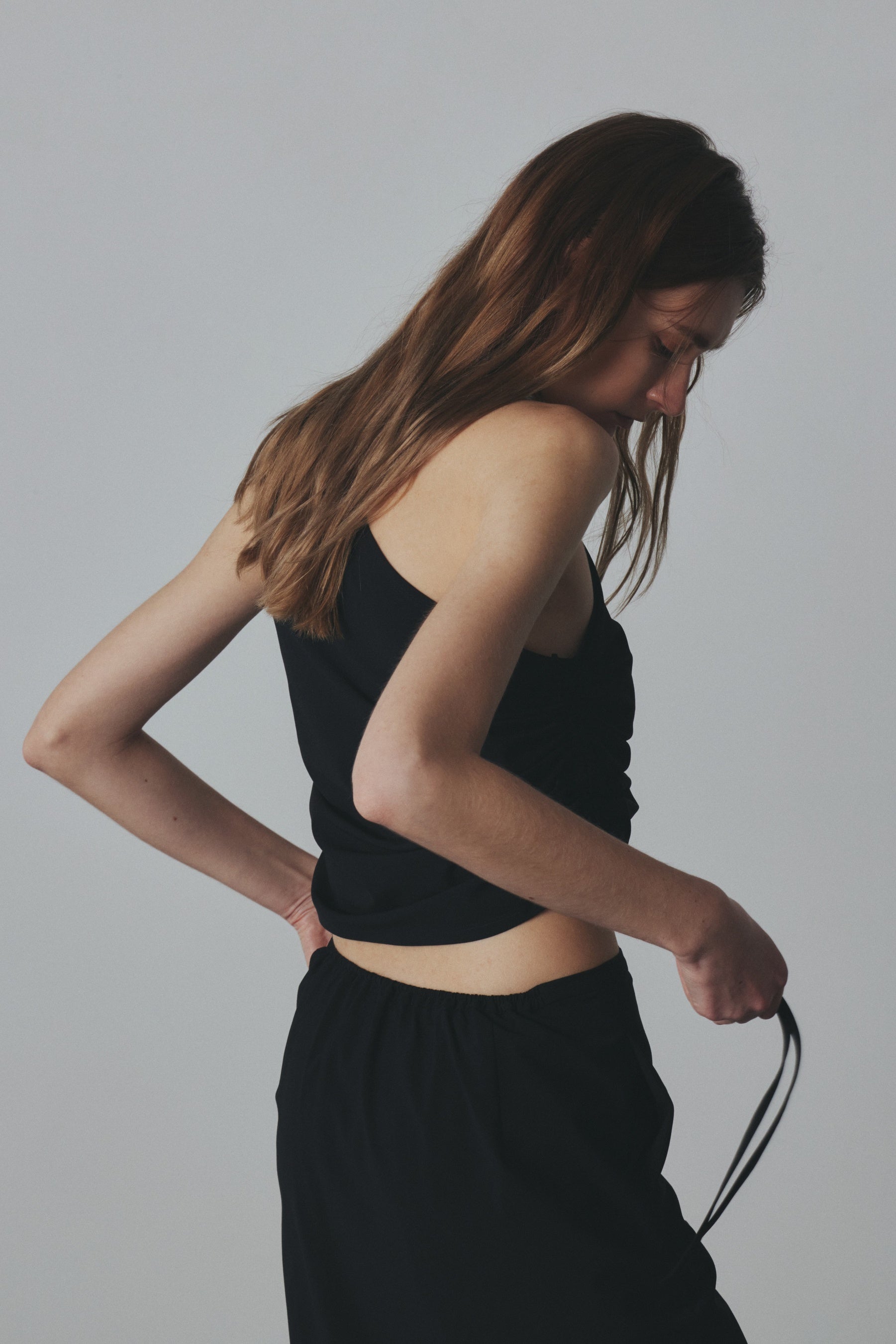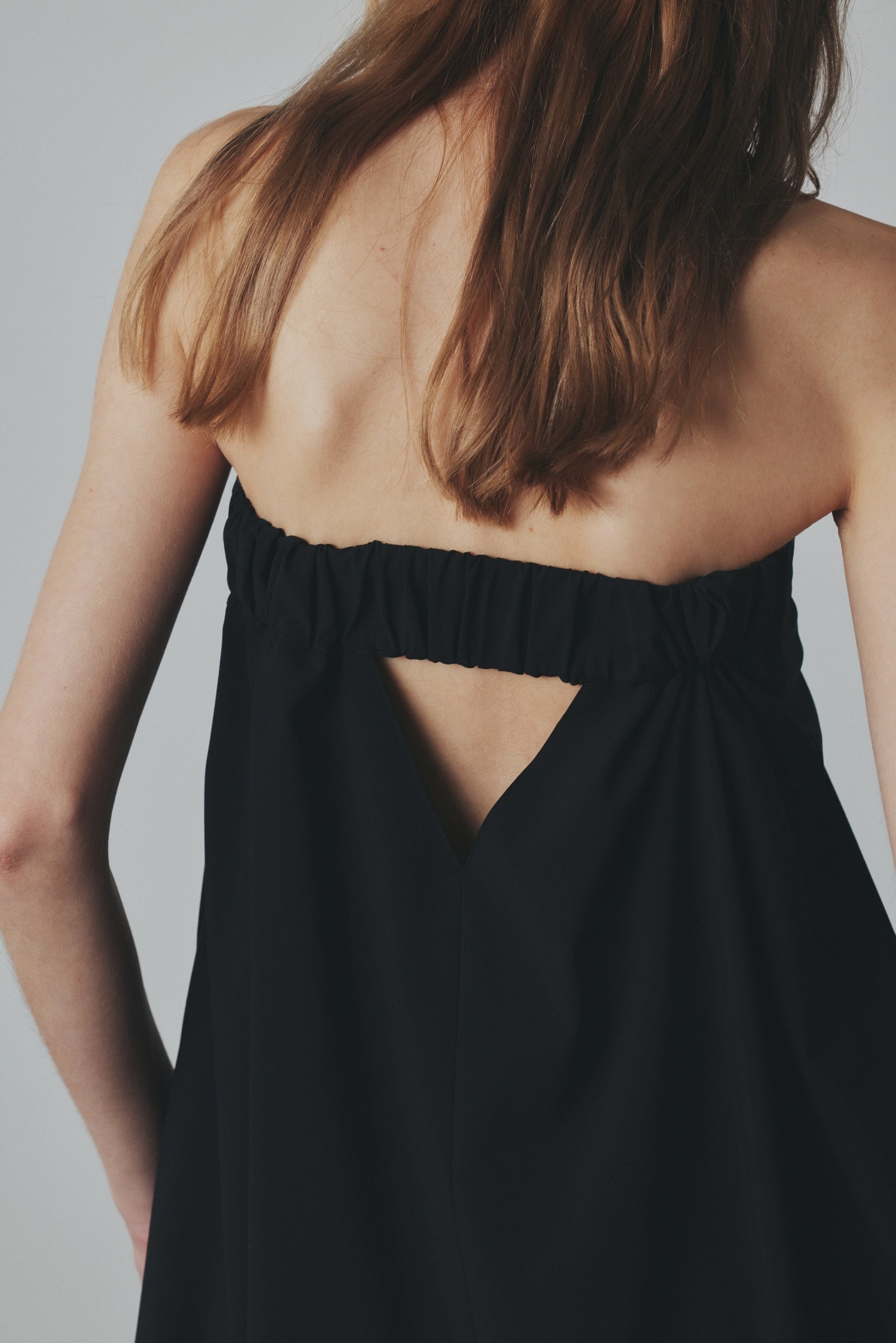 バルーンフォルムをいかしたミニマルなドレス。ストラップは前部分のみ取り外し可能で、キャミソールタイプとベアタイプ、どちらのスタイルも楽しめます。アジャスター付きで長さ調整も可能。裏地は薄手のメッシュを採用し、暑いシーズンも肌離れが良く快適な着心地です。