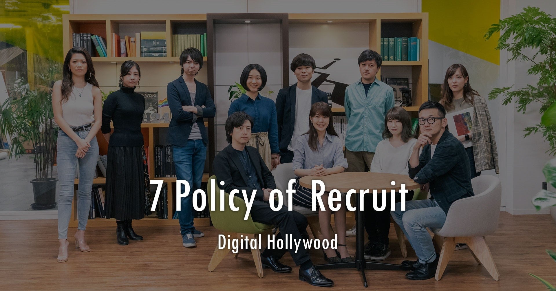 デジタルハリウッド株式会社は「自分らしく生きる人を増やす」という会社のコンセプトを採用活動においても体現するため、7つの採用ポリシーを設けました。選考に参加する学生においては、選考を通して相互理解を深め、当社が自身にとって入社するべき会社であるかを判断していただきたいと考えます。また、これにより、企業と学生の双方が幸せになる採用/就職活動の実現に少しでも寄与できれば幸いです。