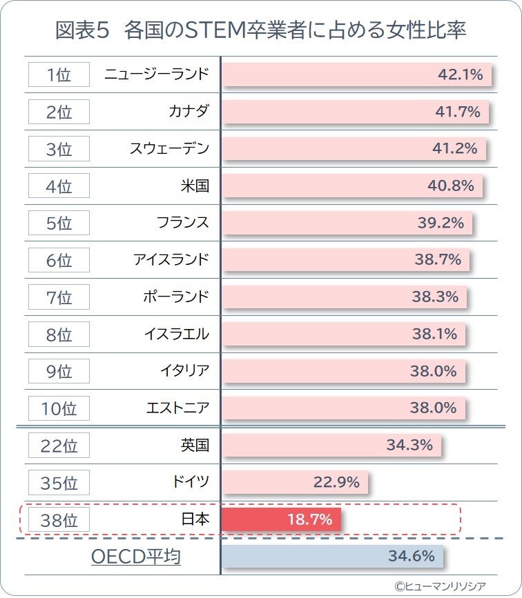 ●IT・STEM卒業者に占める女性比率は最下位水準で、教育段階からの裾野拡大が課題