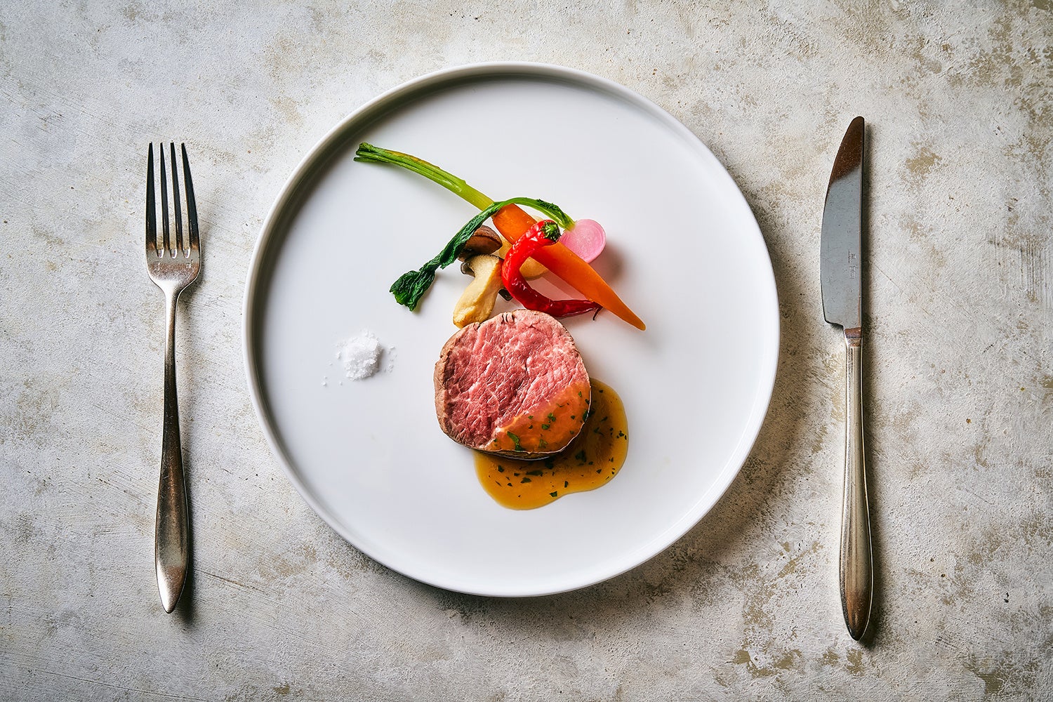 フランスブルターニュ地方のゲランド塩を使用し、伝統のレシピで作る塩パイで牛フィレ肉を包みました。蒸し焼きにすることで柔らかに仕上がり、優しい塩の旨味を感じられます。エシャロット、白ワイン、フォンドヴォー、ハーブを加えたさっぱりとしたソースでこだわりの一皿をお楽しみいただけます。