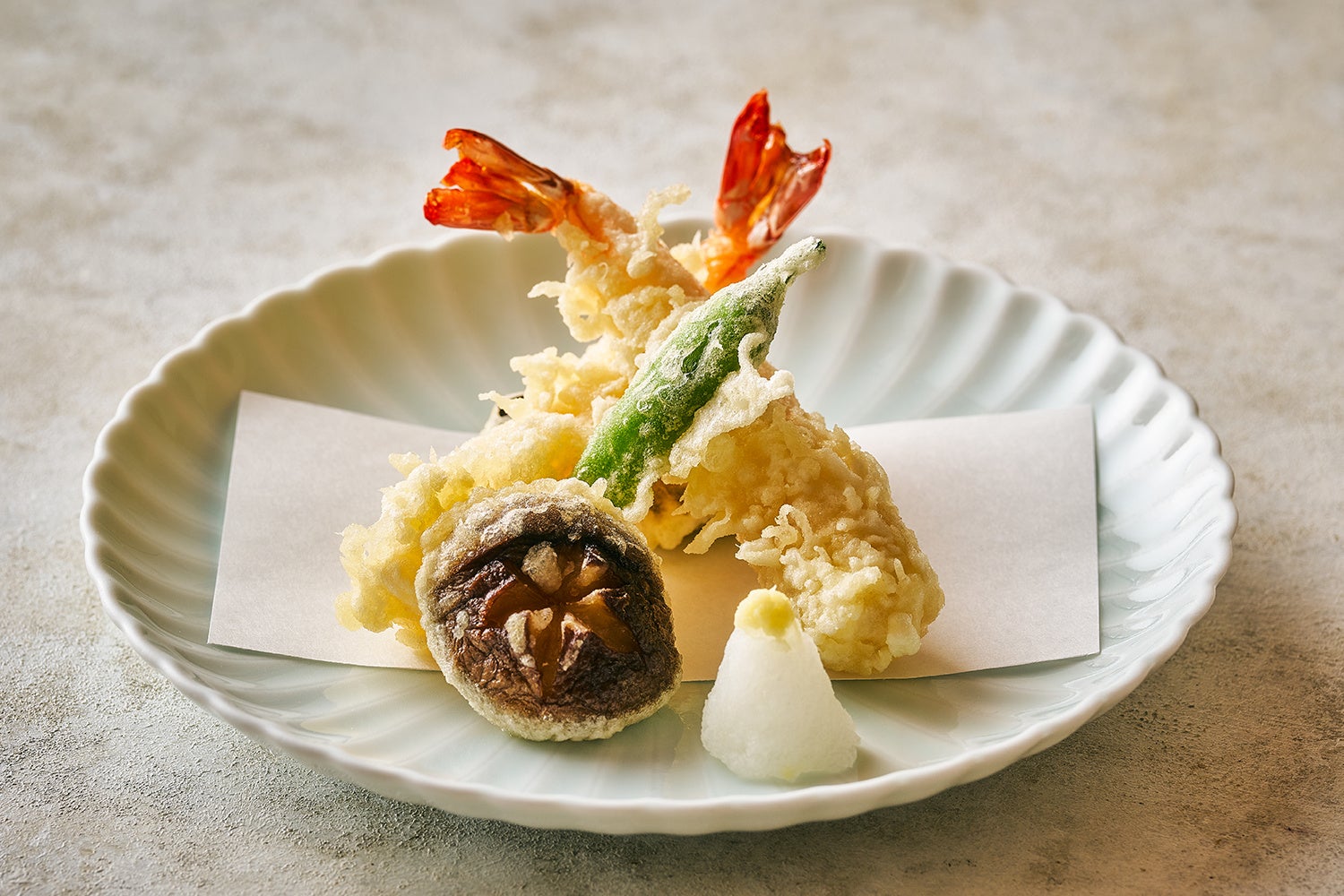 素材の味を最大限に引き出し、季節の魚介と野菜を天ぷらにしました。見た目にも美しい逸品です。