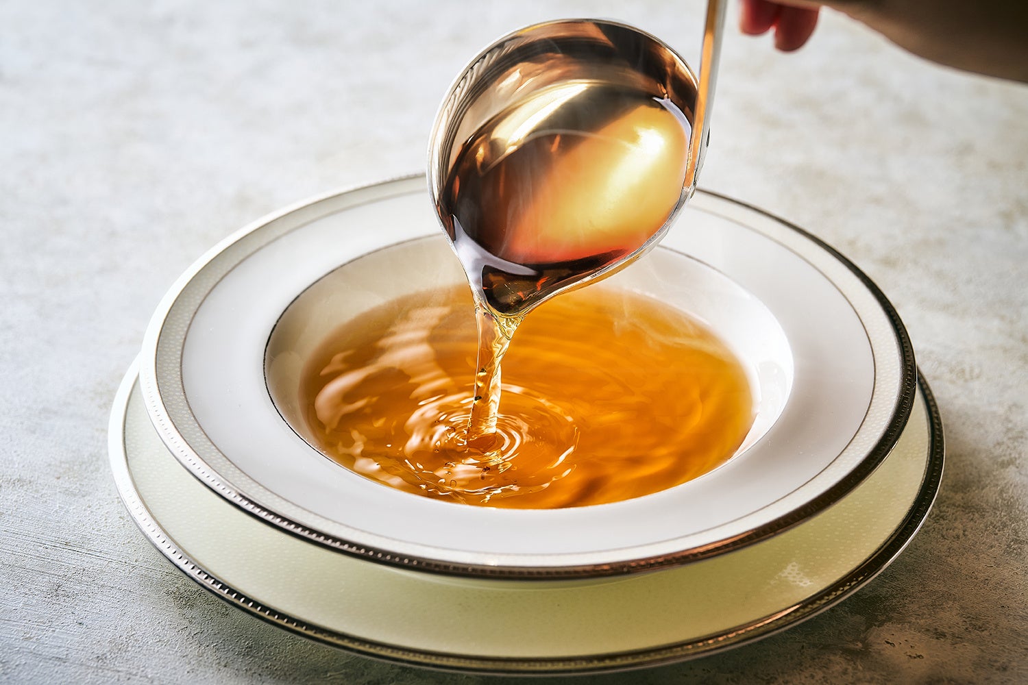 ブイヨンを挽くところからじっくりと3日間かけ、牛肉の旨味を抽出した味わいの深いスープ。ホテルオークラ開業当時総料理長の小野正吉のレシピに基づき“オークラの味”として伝えられてきた逸品です。