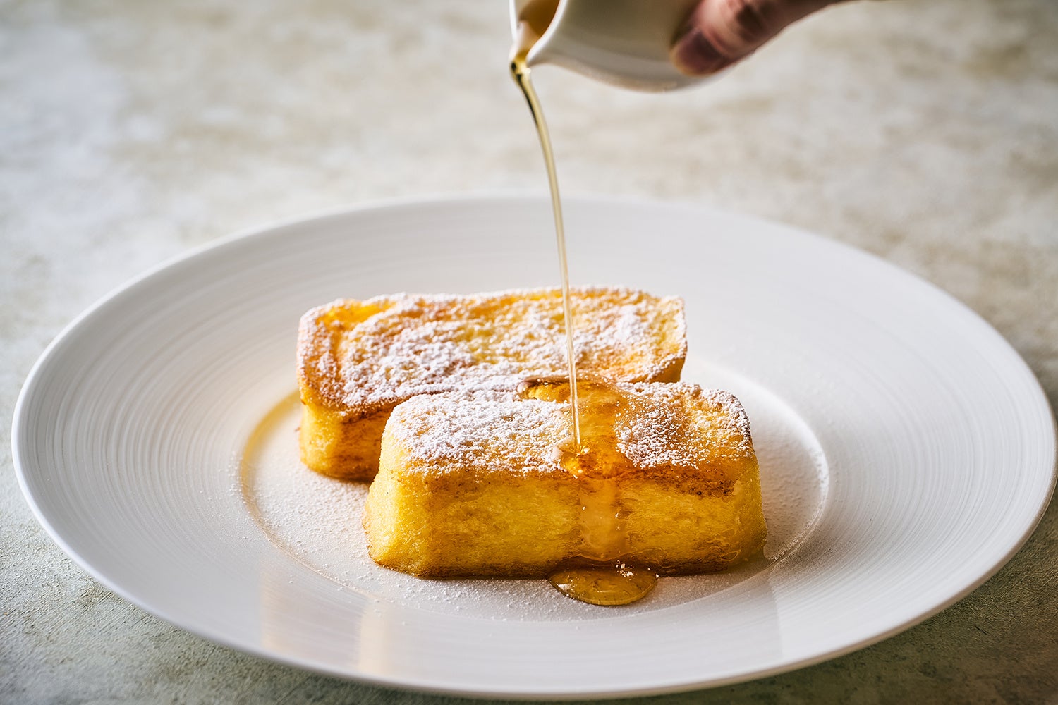 パンをカットして一日乾かすことで浸透圧を高くし、もう一日かけてしっかりとアパレイユ(卵液)を含ませる手間を惜しまないフレンチトースト。オークラならではの人気の逸品。