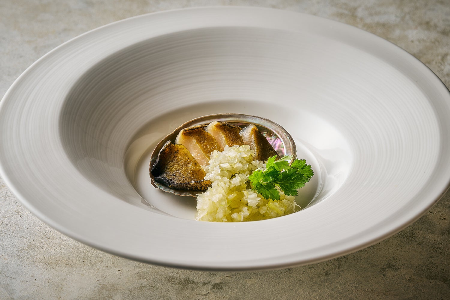 お客様が食べやすいように、鮑が硬くならない仕込みを施しており、蒸しても柔らかく召し上がれます。鮑の食感、磯の香り、葱と生姜の風味を楽しめる逸品です。