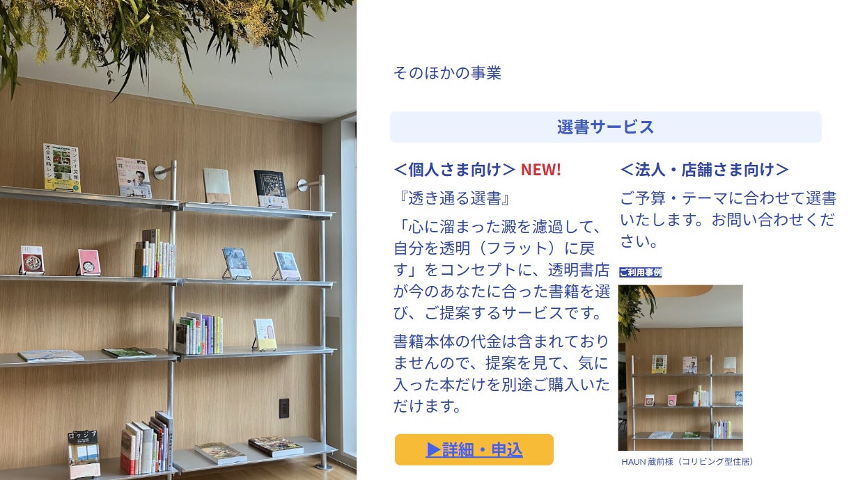 freeeグループ「透明書店」、新たな取り組みとして選書サービス・「しおり」広告サービス・法人向けシェア本棚提供を開始
