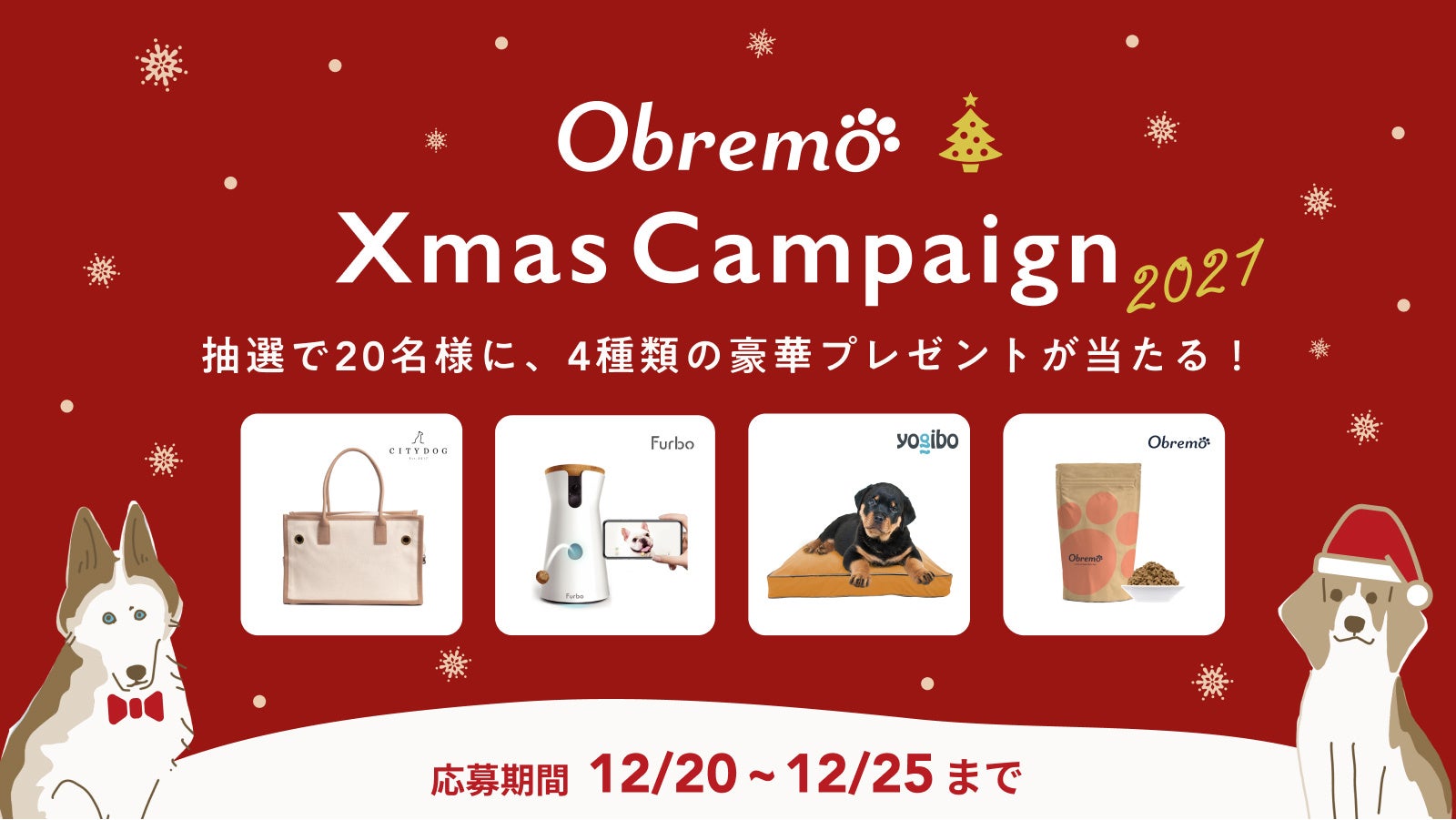 今回のキャンペーンでは、Obremo公式Instagramを応援していただいた対象者の中から抽選で20名様に、飼い主さまのために厳選した賞品をクリスマスプレゼントとしてお贈りいたします。愛犬との暮らしがより豊かになるようなプレゼントをご用意しました。