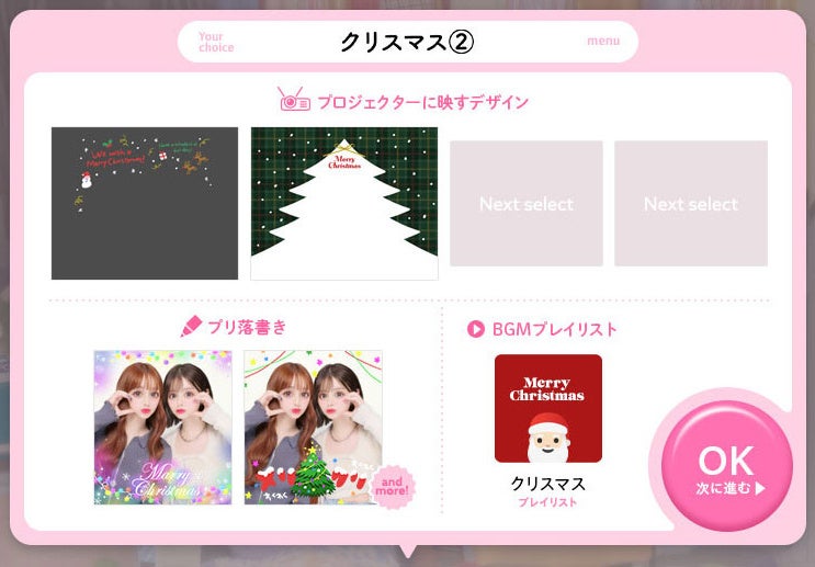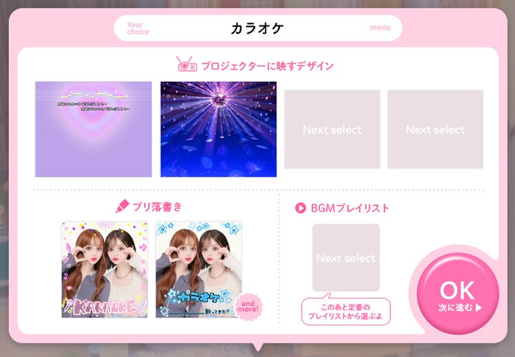 本機能では、選択テーマに合った「プロジェクターフォト」のデザイン・プリ落書きコンテンツ・BGM・シールデザインをまとめて提案。撮影中はもちろんプリを見返す時まで、その日のことを思い出せるような体験をお届けします。