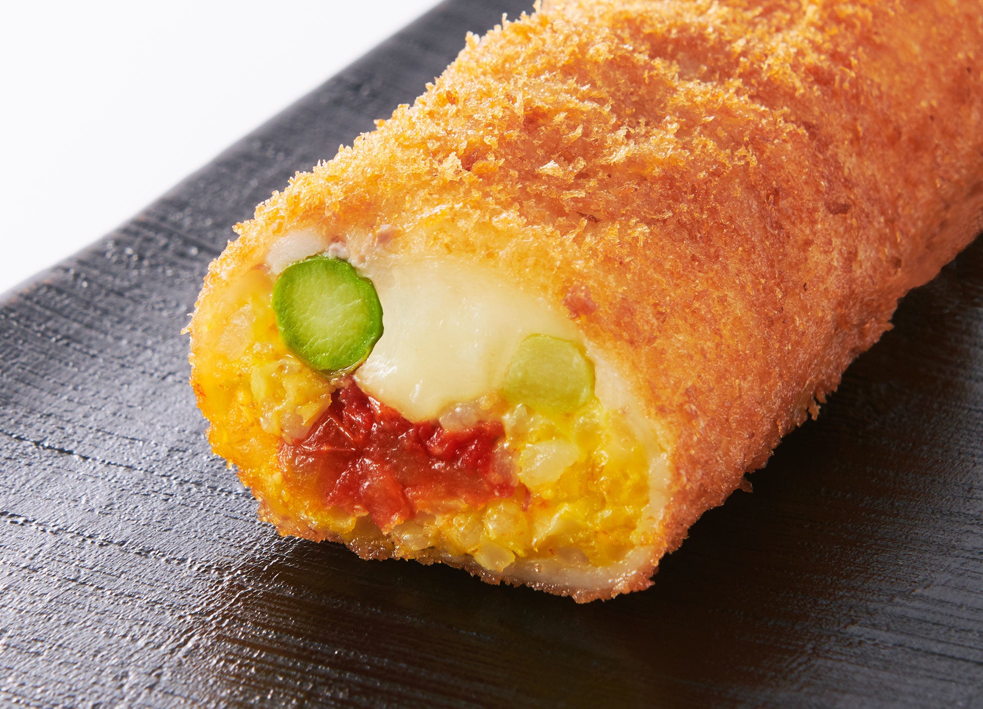 具材:チーズリゾット、豚肉、モッツァレラチーズ、アスパラガス、ドライトマト