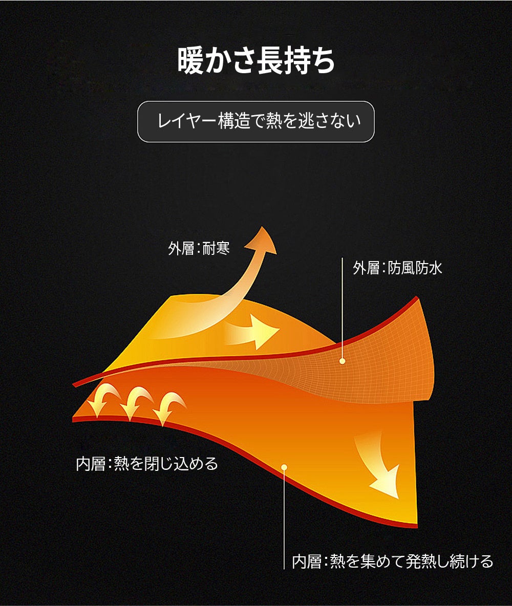 分厚いポリエステルで外からの風を防いで、グラフェン素材によってこもっている熱を上手に循環させることによって、高い防寒性能を誇っています。