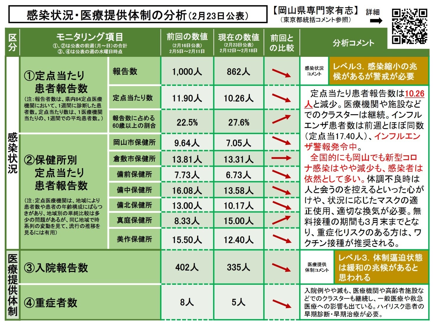 ・岡山県内の感染状況・医療提供体制の分析について(2024年2月16日現在)
