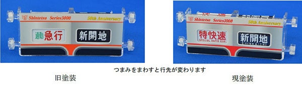 神鉄3000系車両のデビュー50周年を記念した「ミニミニ方向幕」等のオリジナルグッズを発売します。