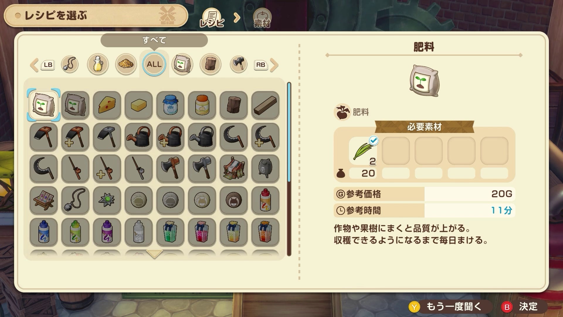 「バター」や「香水」、「アクセサリー」に「バザールオブジェ」、より良い道具が作れることも! 加工には物によって少し時間が必要ですが、風の強い日にはより早く加工できるので強風の日は絶好の加工日和になるかも?