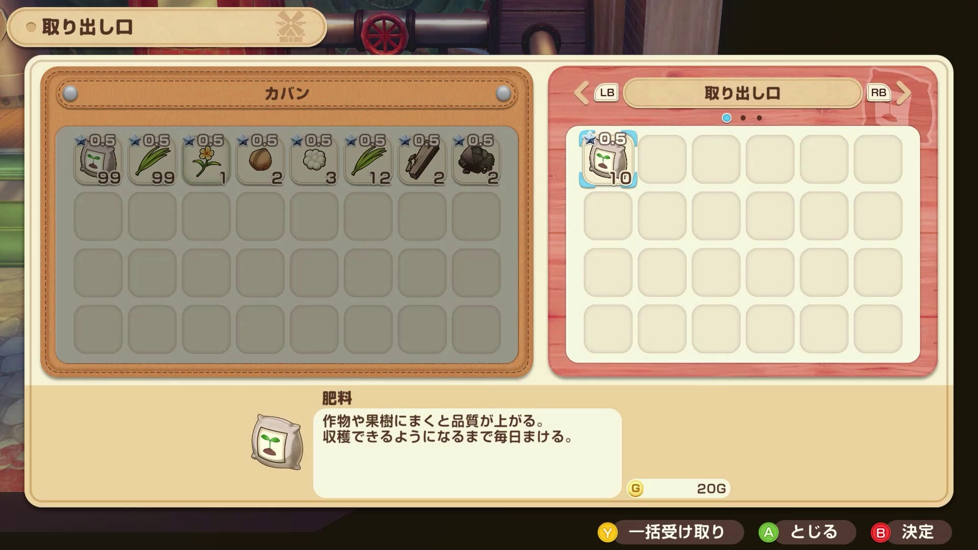 アイザックさんのお願いを解決することで修理してもらえる風車を使えば、さくもつや副産物、色々な自然の恵みを様々な物に加工することができます。