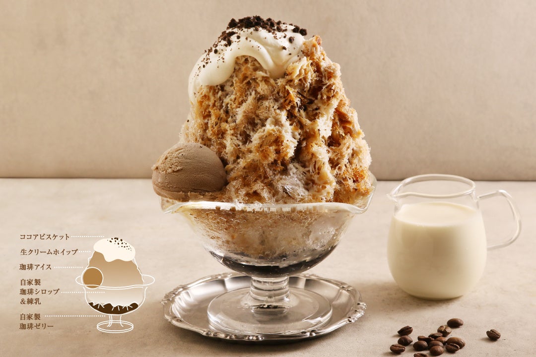 喫茶 太陽コンパスから、「純氷」のふんわりかき氷3種が新登場!「珈琲ミルクかき氷」は、オリジナルブレンドのエスプレッソを使用。
