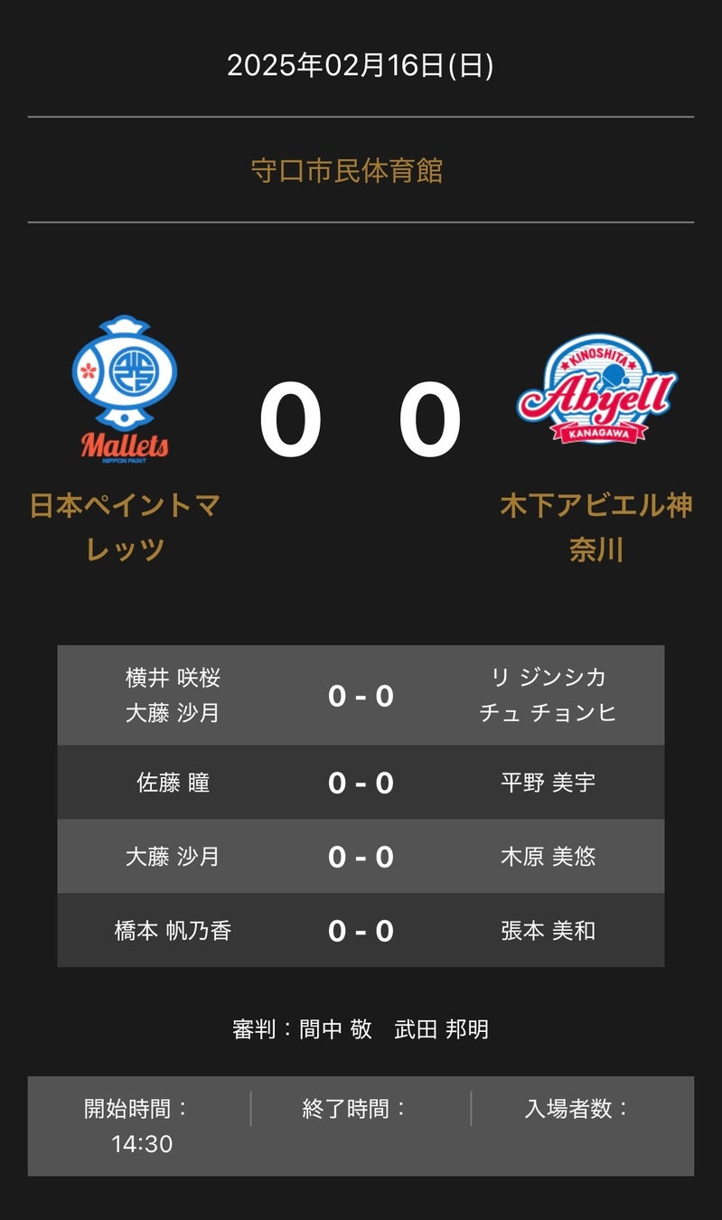 ノジマTリーグ 2024-2025シーズン 公式戦 2月16日開催 日本ペイントマレッツ vs 木下アビエル神奈川 対戦オーダー発表