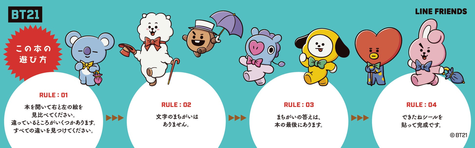 LINE FRIENDSのグローバル人気キャラクターブランドBT21のシール付き『まちがいさがし絵本』が初登場!
