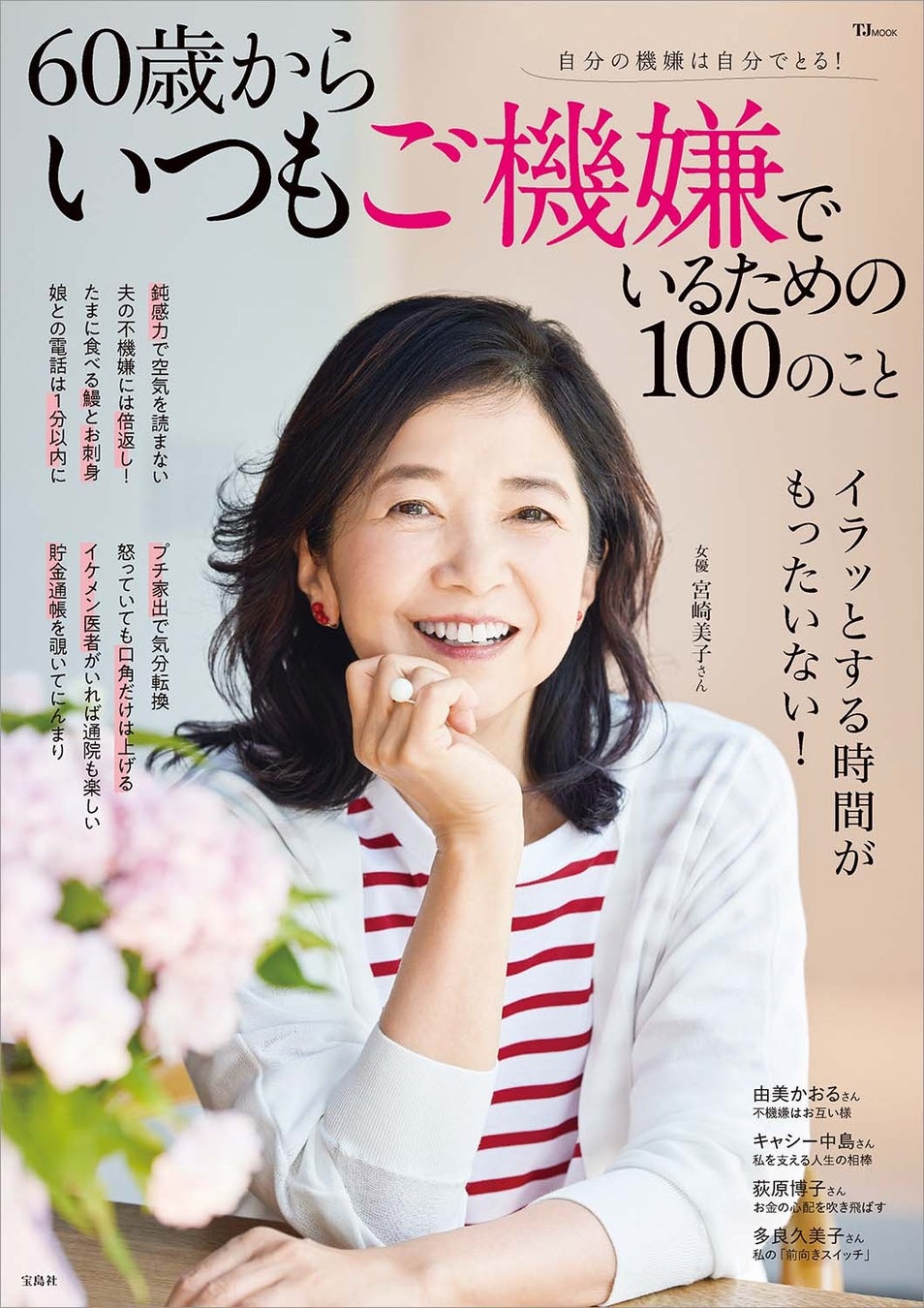 シリーズ6冊目の最新刊のテーマは「ご機嫌でいること」。「イラッとする時間がもったいない!」をコンセプトに自分の機嫌を自分でとるためのヒントやアイデアを、「不機嫌な人に振り回されない」「不機嫌は素早く切り替える」「習慣と暮らしでご機嫌に」「上手な終活」など様々な切り口で100例集めました。そのほか、女優・宮崎美子さんの上機嫌の秘訣や、由美かおるさんのインタビューなどを掲載しています。