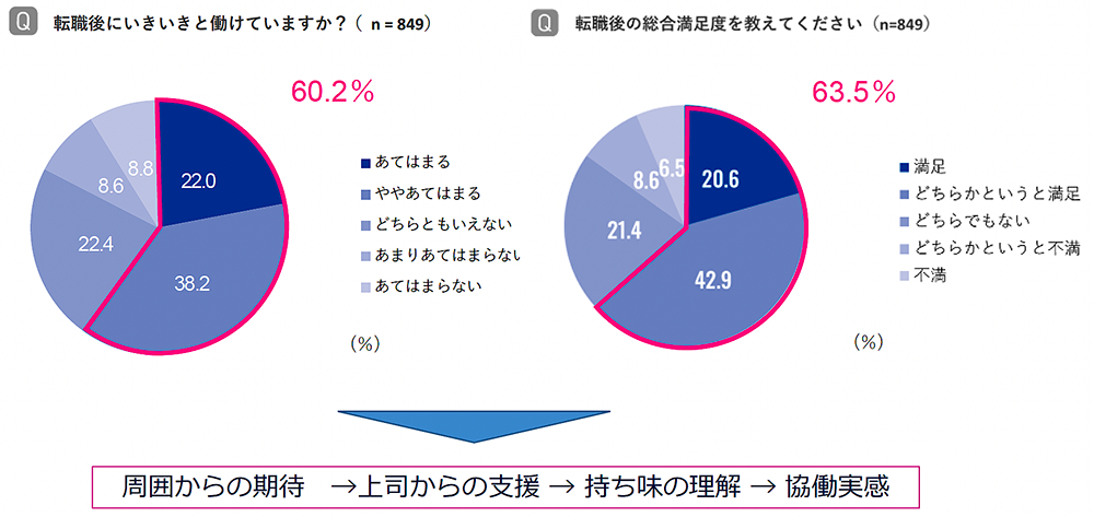 転職後「いきいきと働けている」「満足している」は約6割 いきいきの鍵は、周囲からの期待・上司の支援・同僚の理解など