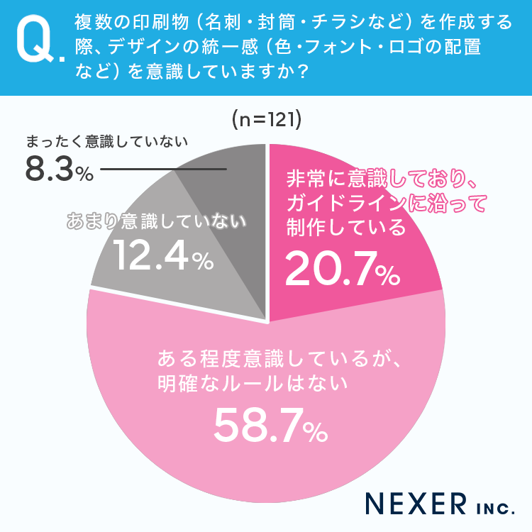 続いて、複数の印刷物(名刺・封筒・チラシなど)を作成する際、デザインの統一感(色・フォント・ロゴの配置など)を意識しているか聞いてみました。