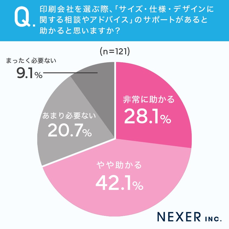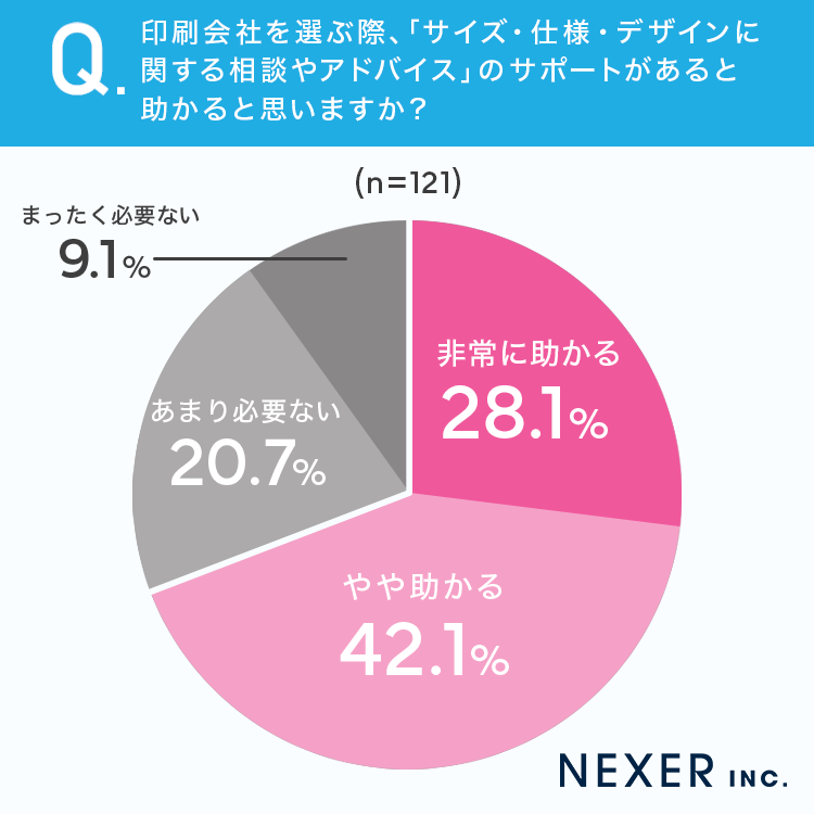 さらに印刷会社を選ぶ際、「サイズ・仕様・デザインに関する相談やアドバイス」のサポートがあると助かると思うか聞いてみました。
