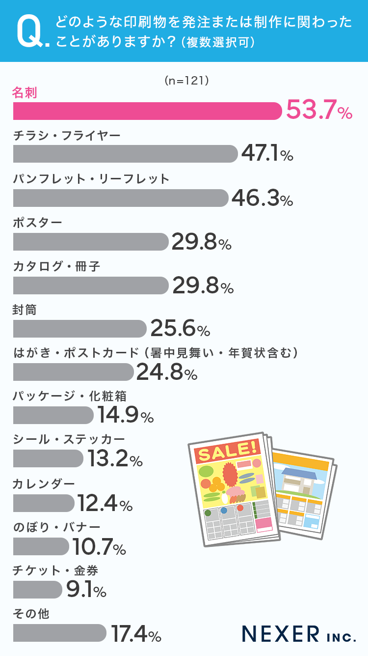 そこで今回は総合印刷のネット通販『WAVE』と共同で、事前調査で「仕事で印刷物の発注または制作に関わったことがある」と回答した全国の男女121名を対象に「法人印刷の課題」についてのアンケートをおこない、その結果をサイト内にて公開したので紹介します。