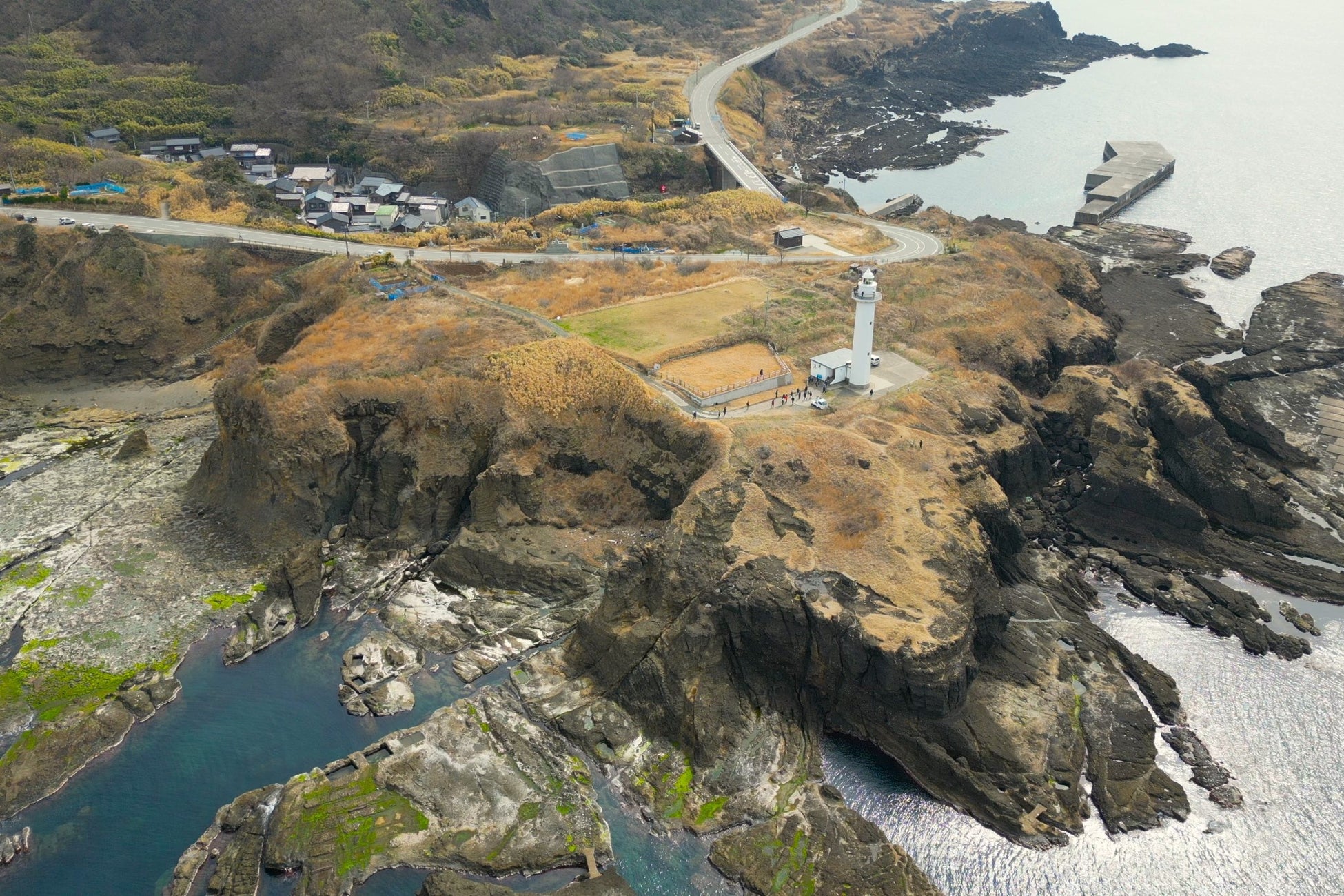 佐渡市西端に位置し、海底火山の噴火で形成された枕状溶岩が広がる独特の地質・地形から成る絶景の地に立つ灯台。初点灯は1928(昭和3)年。24.2mと佐渡一の高さを誇る八角形の白い塔で、与謝野晶子が詠んだ歌にも残る歴史的建造物です。古くから成る直江津・小木航路において、小木へと向かう船が、第一目標として視認する標識として重要な役割を果たしていました。