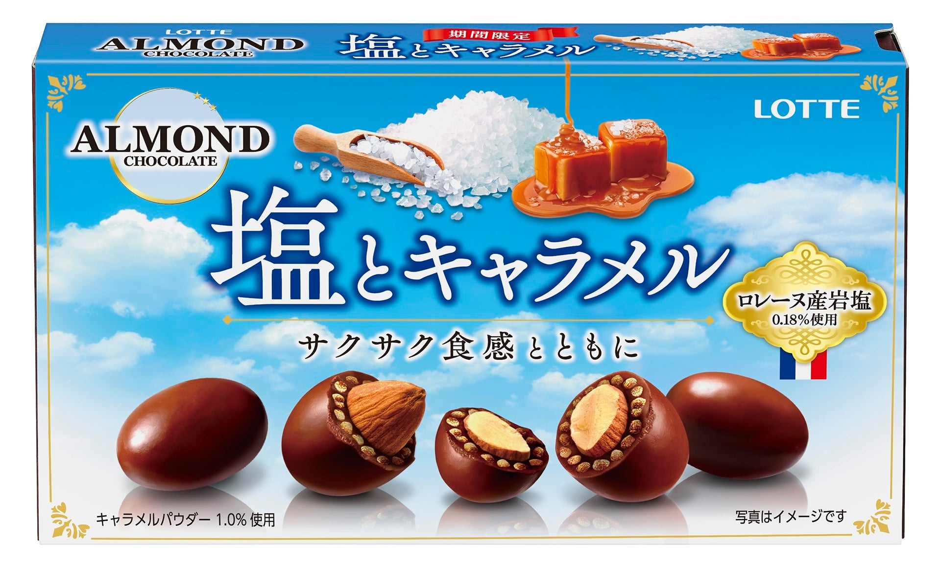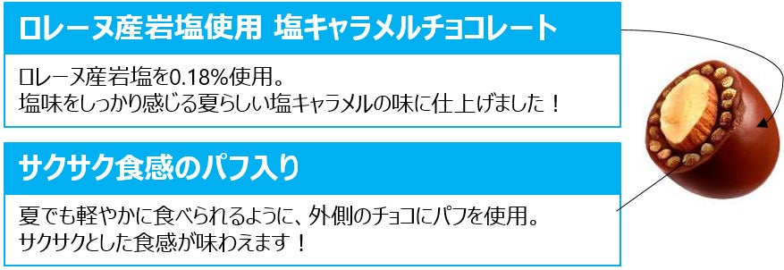 株式会社ロッテは6月13日(火)、キャラメルの甘さの中にロレーヌ産岩塩(*)の塩味がしっかりきいた、夏ならではのチョコレート「アーモンドチョコレート<塩とキャラメル>」を発売いたします。サクサクとした軽やかなパフを練り込み、アーモンドのカリッとした歯ごたえと合わせて2つの食感が楽しめます。塩とキャラメルの味わい、サクサクパフとアーモンドの食感が一体となった絶妙なおいしさをお楽しみください。 * ロレーヌ産岩塩0.18%使用