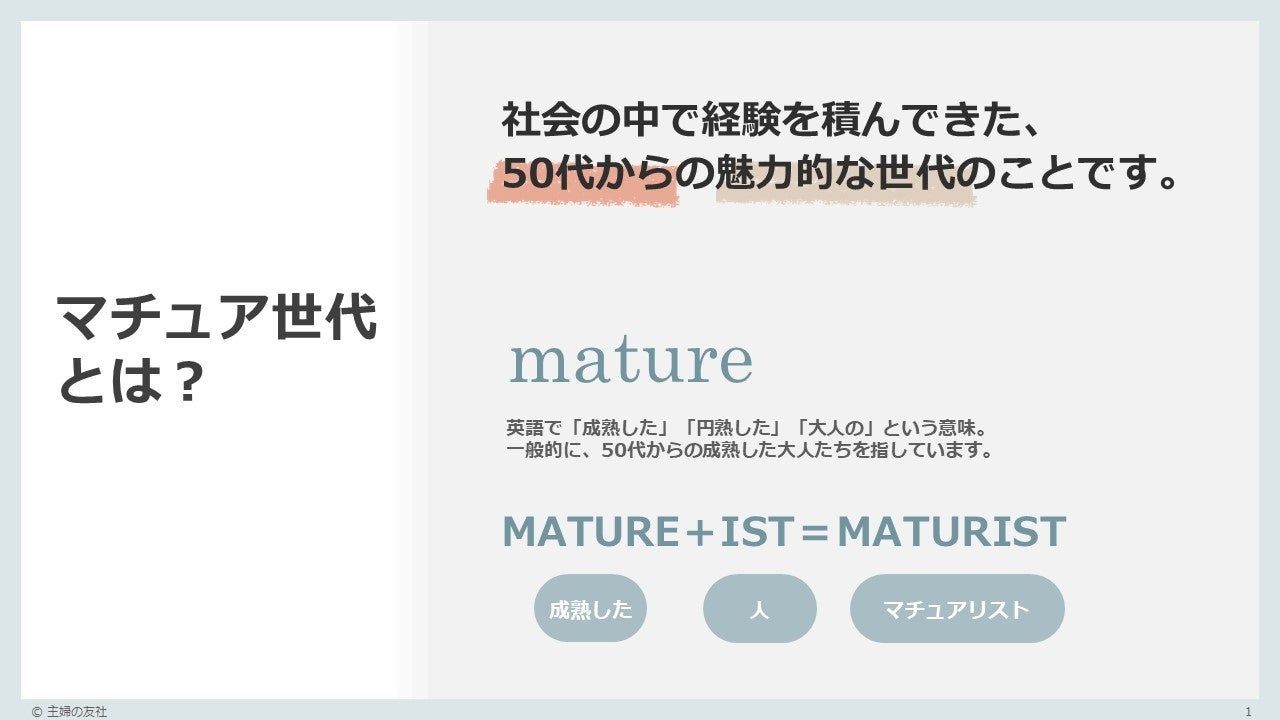 - マチュア世代とは、これまで多くの経験を積んできた50代以上の成熟女性たちのこと