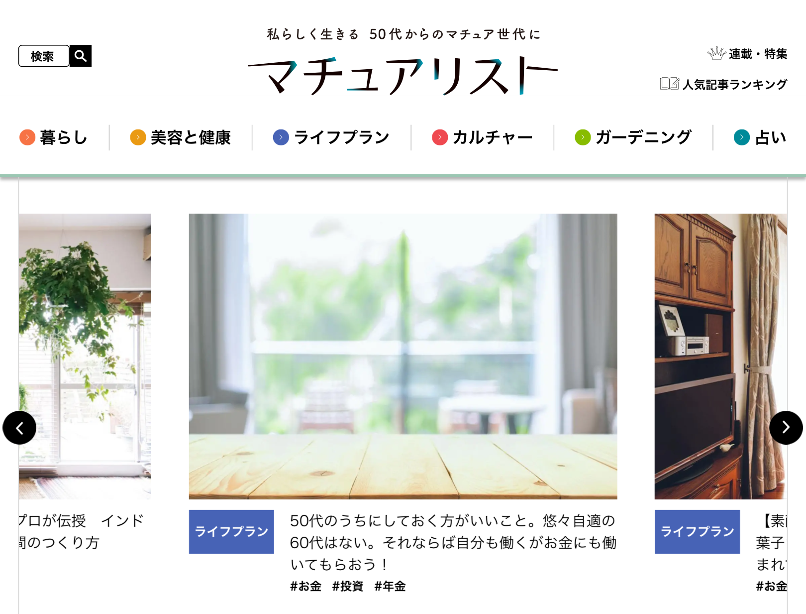 そんなマチュア世代の皆さんの気持ちと暮らしに寄り添う情報を、「マチュアリスト」がお届けしていきます。