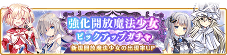 『強化開放魔法少女ピックアップガチャ』では、下記ピックアップ対象の魔法少女の提供割合がアップしております。