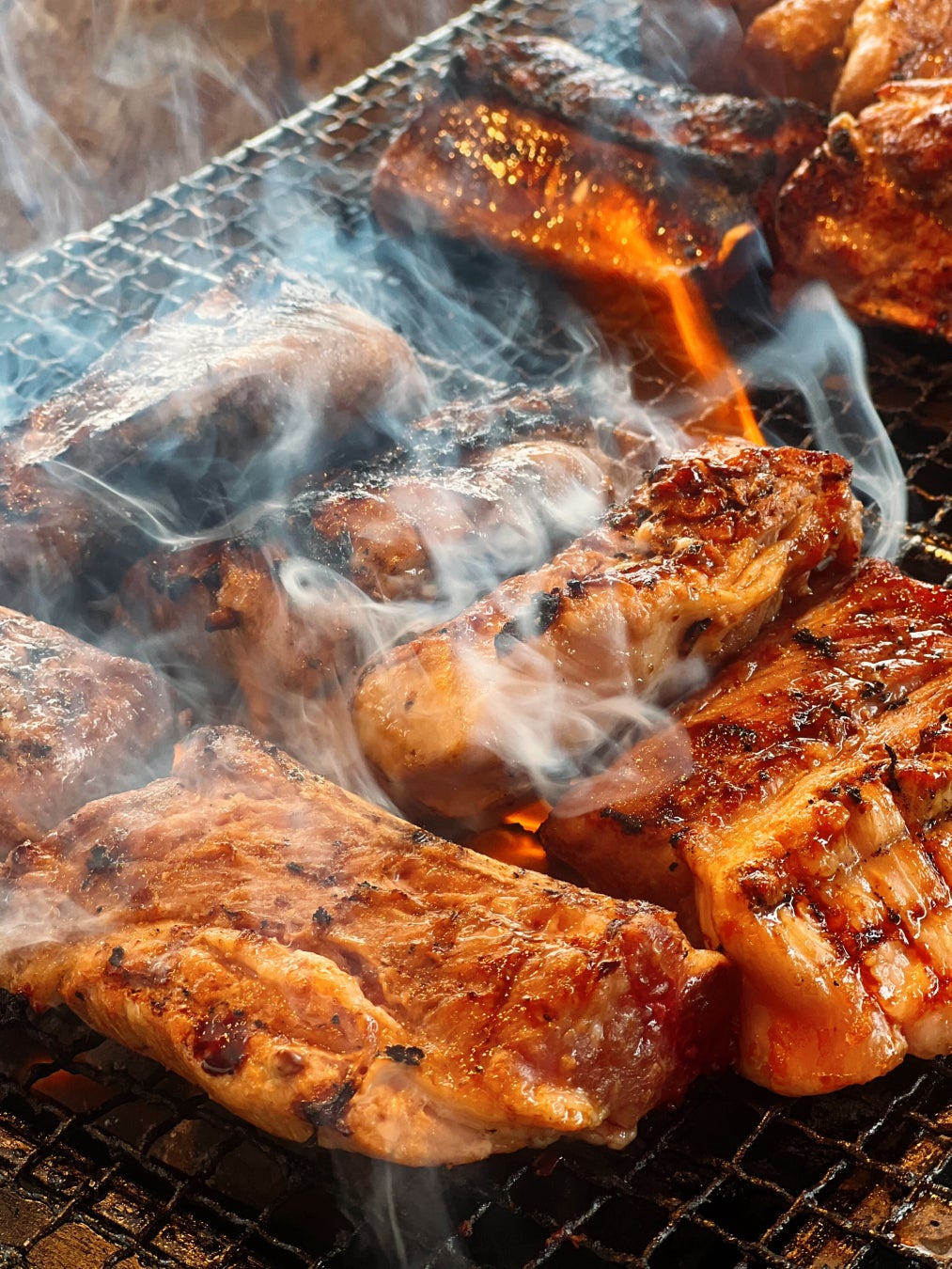 100余年にわたり受け継がれた伝統の技で造られた醤油を使用し、独自のオリジナル製法で作り上げた、だるまのタレ。数種の厳選した塩をブレンド、だるまの塩。こだわりの、博多名物ぐるぐる鶏皮串を是非ご賞味ください。