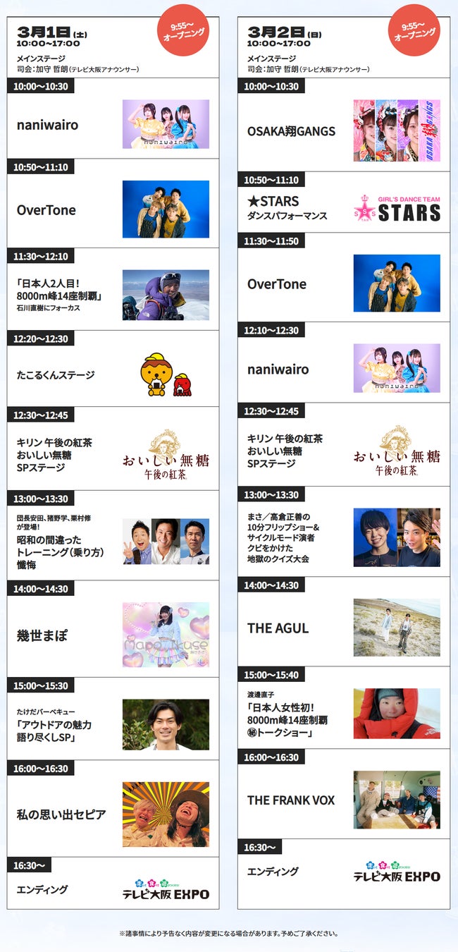 走って、食べて、遊びつくす!がコンセプトのテレビ大阪EXPO。そんなイベントを盛り上げるステージでは豪華ゲストが集結!8000m峰14座を完全登頂した「石川直樹さん(日本人2人目)」や、「渡邊直子さん(日本人女性初)」など今話題の登山家や、自転車系インフルエンサーのまさくん、さらには豪華アーティストによる音で会場を盛り上げます!