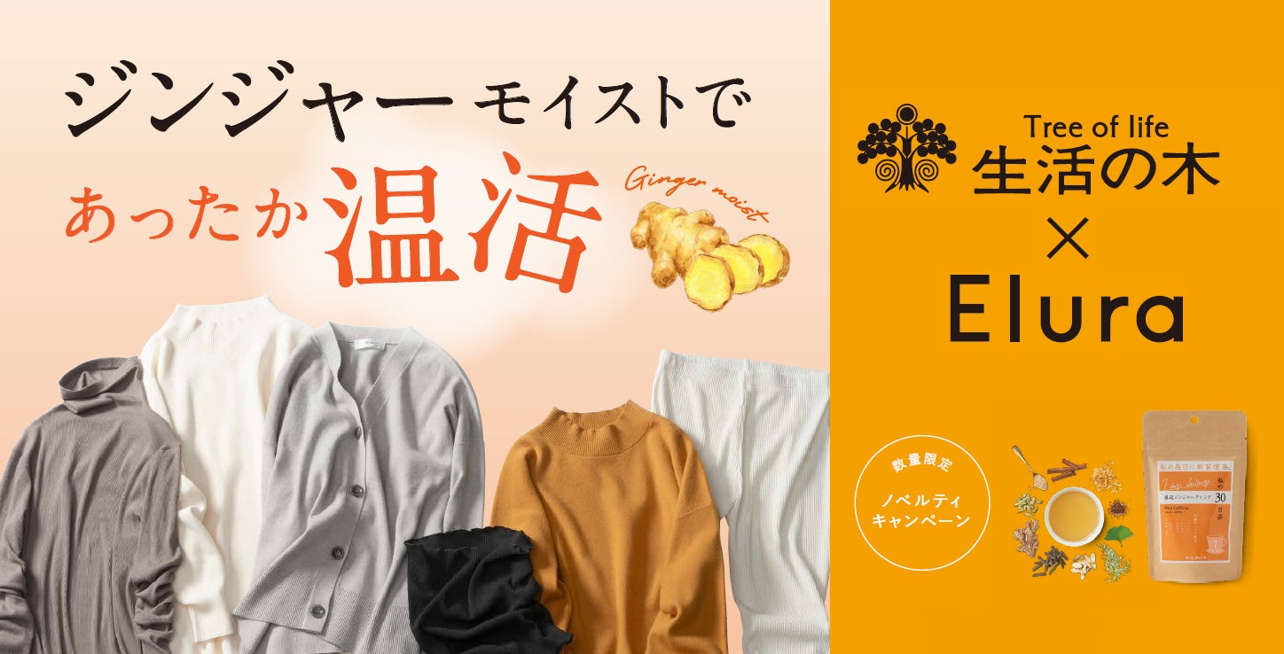 “大人の悩みに効く服”Eluraが、生活の木と初コラボ!大人女性の温活を内側と外側からサポートするスペシャルキャンペーンが11月27日よりスタート