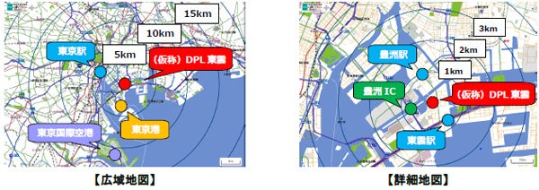 今回開発する「(仮称)DPL東雲」は、当社が東京都内において開発する最大の物流施設で、東京の湾岸エリアに位置し、「東京駅」や「銀座・日本橋エリア」の東京都心から5km圏内の大型マルチテナント型物流施設です。首都高速晴海線「豊洲インターチェンジ」より約1.5kmと首都高速道路にも至近したエリアで、複数の幹線道路にもアクセスしやすく広域配送にも適した立地です。