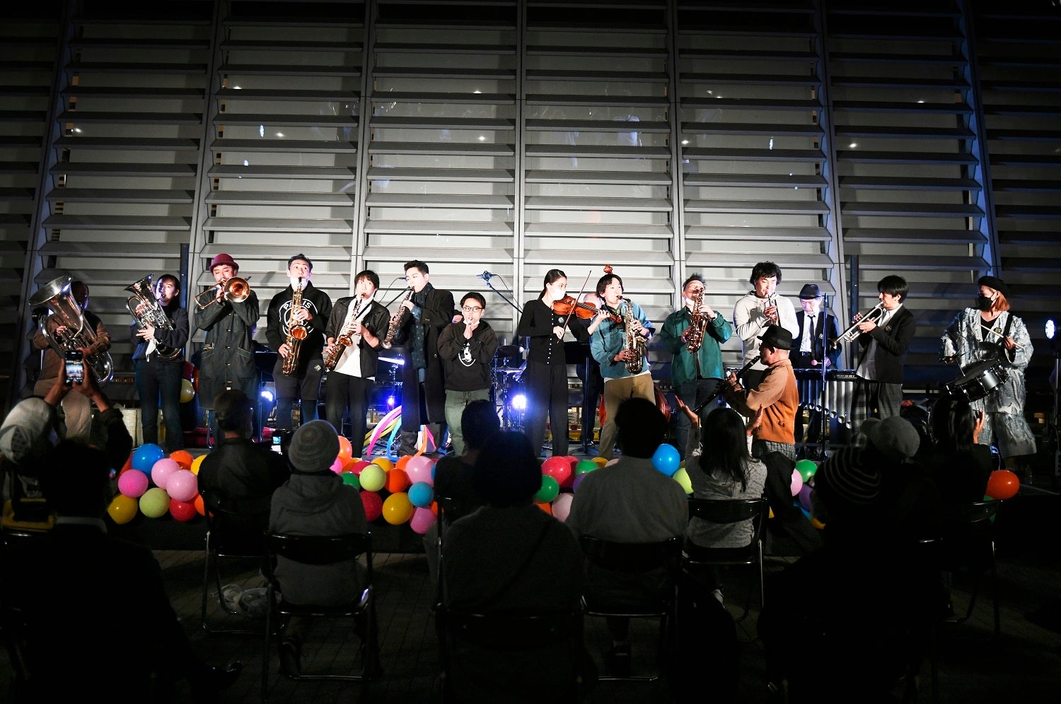 開幕に先駆けて9月29日(木)に信毎メディアガーデン前にて行われた前夜祭では、伊佐津カルテットのジャズ演奏に始まり、TCアルプによる司会のもと、『スカパン』出演の大森博史、小日向文世や、『別役実 三部作』演出の千葉哲也など、各公演の出演者や演出家らが自らそれぞれの演目を紹介。『バッタの夕食会』出演者と伊佐津カルテットによる劇中楽曲演奏では、公演の出演者たち、そして足を止めた多くの街の人たちが音楽と共に一つに。「FESTA松本2022」開幕に向けた祝いの前夜祭を大いに楽しんだ。
