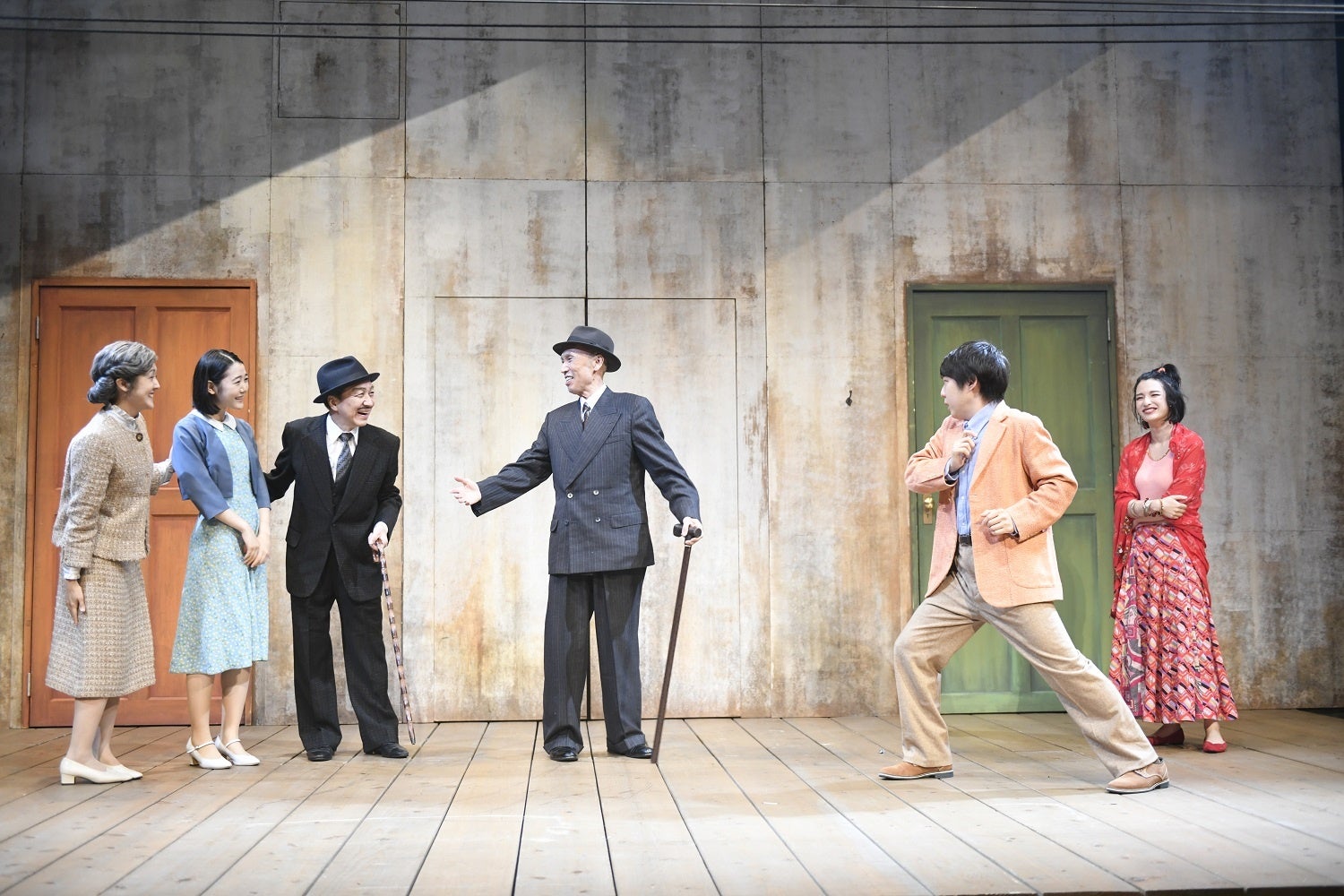 元オンシアター自由劇場のメンバーとして、数々の舞台を串田と共にして来た大森博史(アルガント役)と小日向文世(ジェロント役)が出演というのもジンとくる趣向。軽快に動いて、転げ回って、喋りまくるスカパン串田(驚異的な80歳!)と、終始むっすりとした表情を浮かべるこの守銭奴たちとの味のあるやりとりはユーモラスで、客席を沸かせる。恋に夢中、青春を謳歌する若者たち、オクターヴ(小日向星一)&イアサント(湯川ひな)、レアンドル(串田十二夜)&ゼルビネット(皆本麻帆)の2組のカップルも、周囲が見えない猪突猛進ぶりで笑いを誘う。人生が暮れるのは早い……このバラ色の頬の子どもたちも、すぐに大人になるだろう! 今回は、串田親子、小日向親子と、2組の親子共演が実現したユニークな舞台でもある。また、若い頃から串田の元で活動している、武居卓、細川貴司、下地尚子といったTCアルプメンバーがくっきりと個性の輪郭を見せ、頼もしい戦力として活躍するのも、嬉しく眺めた。自然と「人生の時間」について思考が至る座組み/キャスティングである。