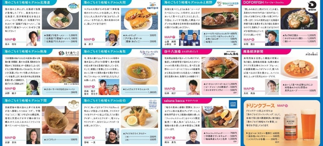 ドリンクブースでは、地域課題となっていたカキ殻を濾過材として活用しているクラフトビール「ASOBI」などを販売し、各地で海と食の課題解決に取り組む「海のごちそう地域モデル」に売上の10%を寄付します。