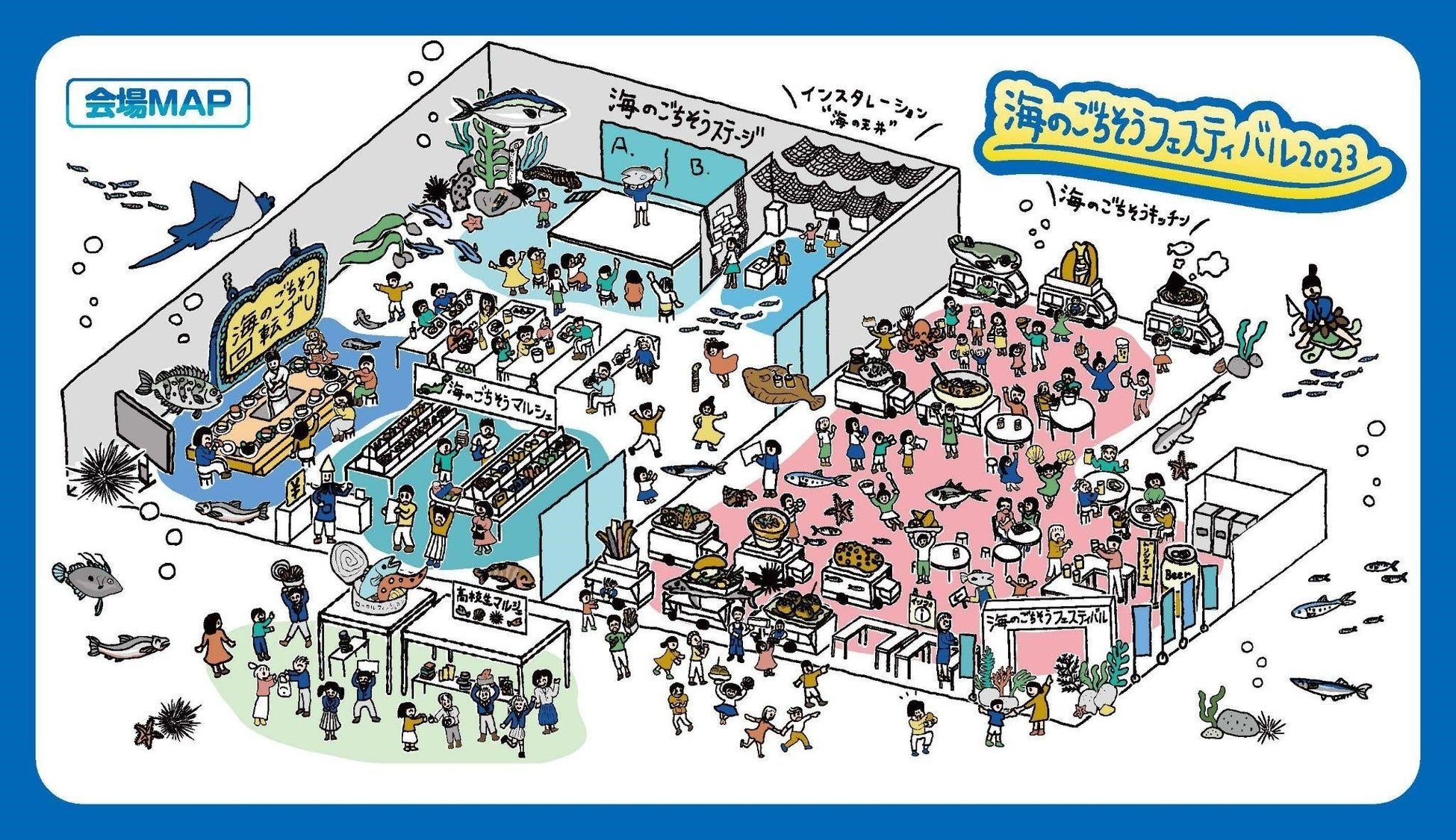 内容 | 海のごちそうキッチン(フード提供) 海のごちそうマルシェ(物販) 海のごちそうステージ(ステージイベント) 海のごちそう回転ずし(体験ブース) 海のごちそう高校生連携(物販) ほか |