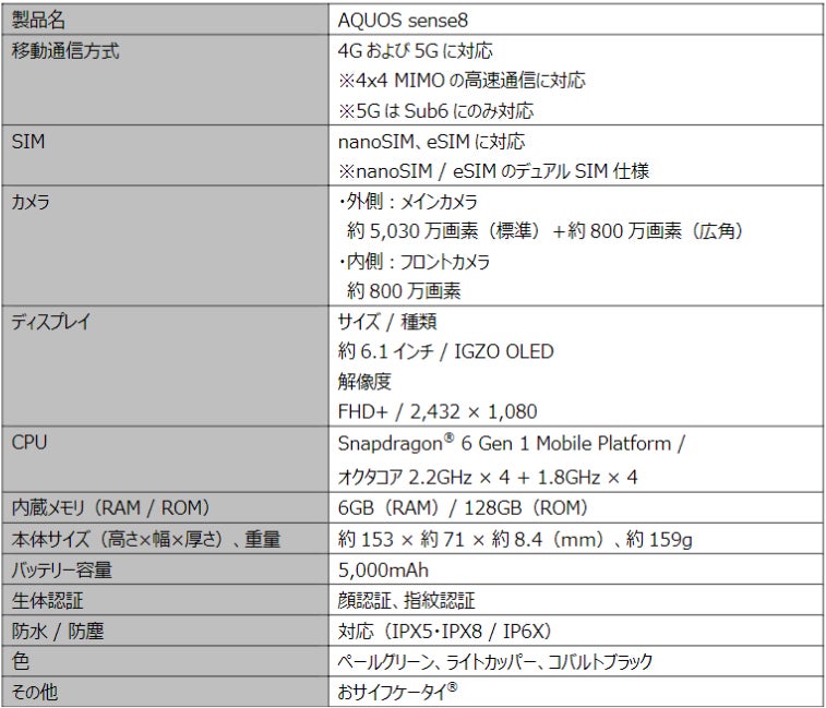 楽天モバイル、「AQUOS sense8」を10月3日(火)より予約受付開始