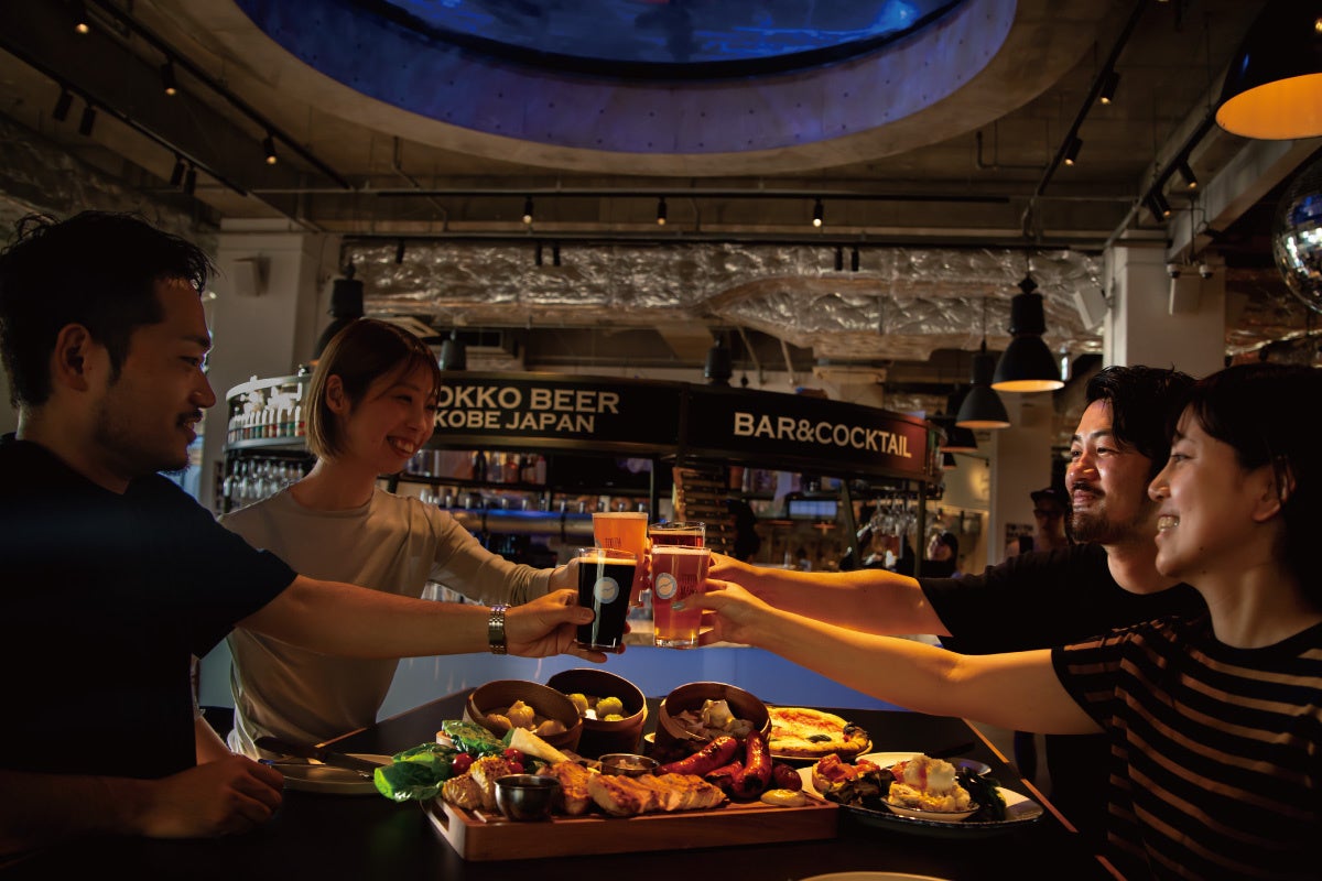 「GLION ARENA KOBE」の開業など神戸で話題のニューシーポートエリア。「神戸ポートミュージアム」1階にあるフードホール「TOOTH TOOTH MART FOOD HALL&NIGHT FES」 (以後、「TOOTH MART」)ではこの夏、神戸最大級の約400席で楽しむビアホールイベント『KOBE BEER HALL 2025』を2025年7月11日(金)より開催いたします。暑い夏は涼しい屋内で天井に揺らめく巨大水槽を眺めながらビール片手に乾杯!ビール好きの方はもちろん、夏の納涼会や同窓会など団体でのご予約に最適のビアホールプランも新登場!