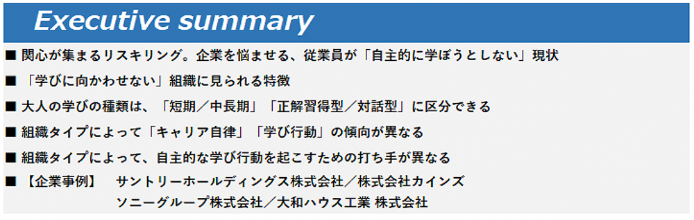 今回はリクルートワークス研究所が発表した報告書、「なぜ人は自主的に学ばないのか~学びに向かわせない組織の考察」より一部を抜粋してご紹介します。